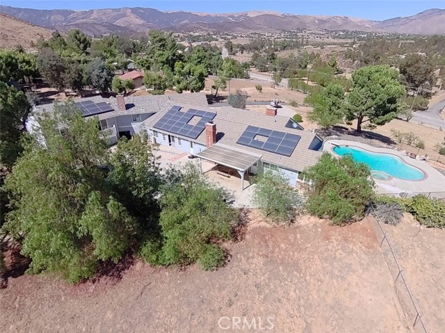 Welcome to your private retreat in the heart of Agua Dulce! This stunning ranch-style estate sits on over 5 acres (217,845 sqft) of fully fenced land, offering breathtaking views, privacy, and plenty of room to live, entertain, and enjoy the outdoors. The residence spans 4,969 sqft and features 5 bedrooms, 4 bathrooms, and 2 primary suites—including one on the main level with direct backyard access. The heart of the home is the country-style kitchen, complete with a large granite island, built-in brick and granite dining table, Wolf 6-burner stove with 2 oversized ovens, griddle, and chef-inspired amenities. Additional living spaces include a formal living room, a family room with beamed ceilings, and a formal dining room. The property also features an in-law suite with its own living room with a balcony and stairs leading to the yard, a wet bar, a fireplace, stained glass windows, and a private bedroom with French doors. The ensuite bath includes dual sinks, a jetted tub, steam shower, toilet room, and his & hers closets—perfect for multi-generational living or long-term guests. On the property, you’ll also find a 1-bedroom, 1-bathroom guest house/ADU, equipped with a full kitchen offering even more space and flexibility. Enjoy resort-style outdoor living with a fire pit, sparkling swimming pool, and spa overlooking the valley. The circular driveway provides ample parking, while the lower level offers space for horses or additional facilities. The grounds are enhanced with drip irrigation, a fenced garden, and plenty of room to expand. Upgrades include 3 central A/C units, 3 water heaters (including tankless), 2 propane tanks, a private well, 2 septic systems, main house septic system only 4 years old and a Tesla Solar System.