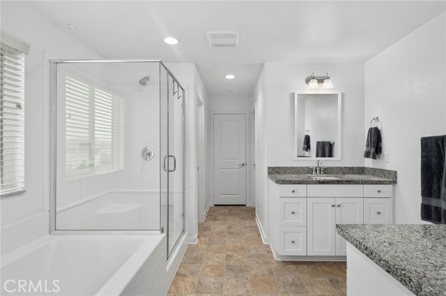Stunning 5-Bedroom, 3-bathroom home offering 3,266 sq. ft. of elegant living space in the Prestigious Olivewood Community by Taylor Morrison! Designed with comfort, functionality, and timeless style in mind, this energy-efficient home with paid solar is truly move-in ready. Step inside to an open-concept floor plan that showcases a bright and airy living area, luxury vinyl plank flooring, and a chef-inspired kitchen with timeless white cabinetry, granite countertops, a large center island, and a double oven, perfect for entertaining and everyday living. The first floor features a full bedroom and bath, ideal for guests or multi-generational living, plus a bonus room that can be used as a home office, gym, or playroom. Upstairs, the spacious loft provides a versatile area for a media room or secondary living space. Retreat to the luxurious primary suite, featuring a spa-like bathroom and a generous walk-in closet. All bedrooms offer comfort and space for family and guests alike. The backyard is fully landscaped and designed for low maintenance enjoyment, featuring an Alumawood-covered patio, artificial turf, river rock accents, and included patio furniture, perfect for relaxing or hosting gatherings, plenty of privacy with no neighbors behind. The 3-car garage provides plenty of parking and extra storage for all your needs. Enjoy resort-style HOA amenities, including a sparkling pool and spa, community park, dog park, picnic area, basketball court, and clubhouse-all within walking distance. Don’t miss this incredible opportunity to own a Taylor Morrison masterpiece in Olivewood, where style, community, and modern living come together. Schedule your private showing today!