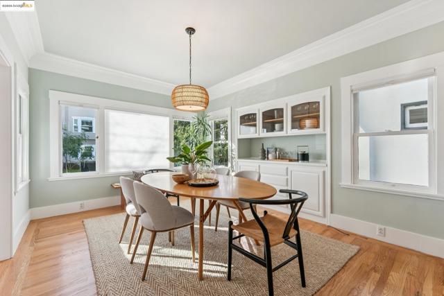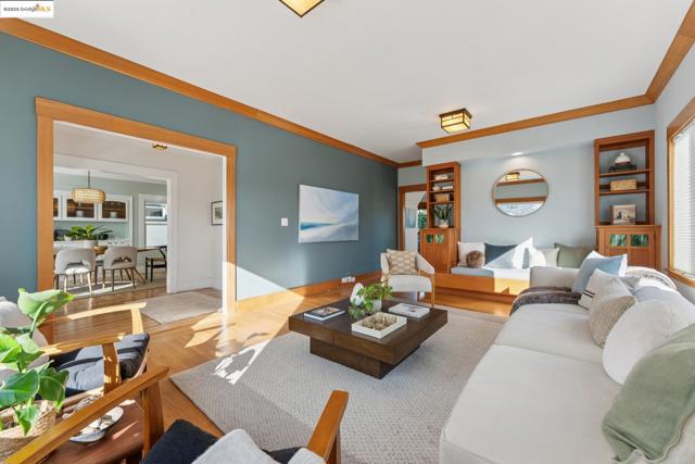 A beloved family home on a quiet cul de sac in one of Berkeley’s favorite neighborhoods! 3033 Regent Street is in the heart of the Elmwood, known for its beautiful architecture, tree lined streets, historic commercial district, popular shops and eateries, its own movie theater, not to mention a Julia Morgan designed live performance theater. Quintessential Berkeley at its best. This classic Craftsman home features four bedrooms, two bathrooms, great flow from the spacious, updated kitchen to the formal dining room and living room, plus a family room that opens onto a sunny deck and backyard. Original built-ins plus more recent beautiful custom fir woodwork, hardwood floors, picture rails, multi-light windows and custom shoji screens built by a master woodworker. Enjoy tranquil views of the Berkeley hills from the upper bedrooms, a skylit bathroom and generous light throughout. The home exudes an organic warmth that ties into the beautifully landscaped and tranquil Zen garden with bamboo, maple and river rocks. 93 Walkscore and 98 Bikescore!
