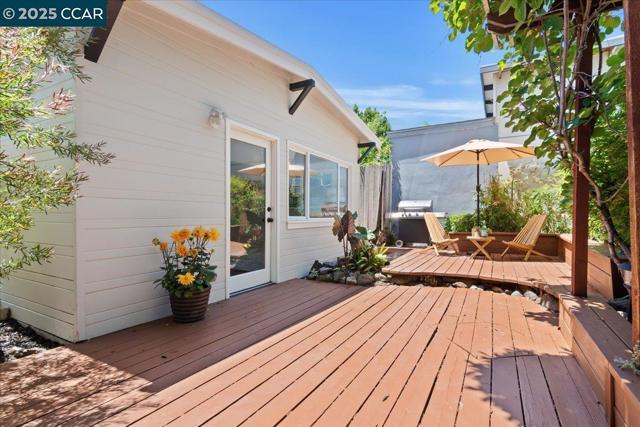 Saturday & Sunday 1 to 4pm Nov 8th & 9th. Located on a charming tree-lined street in Berkeley, 3036 Dorh Street is a beautifully updated Craftsman-style home that blends timeless character with modern upgrades. The main home features two bright bedrooms, an updated bath, and an open-concept living, dining, and kitchen area with recessed lighting and abundant natural light throughout. Potential ADU with the detached rear in-law or cabana offers flexible habitable living space with a newly updated bathroom with a walk-in shower, and kitchenette—ideal for guests, creative pursuits, or a home office. Enjoy outdoor living on the inviting front porch, spacious deck, and in the lush garden with mature fruit trees including loquat and grapes. Off-street parking. Conveniently close to San Pablo Park, Berkeley Bowl West, local cafés, and neighborhood shops, with easy freeway and BART access for a great commute to San Francisco or the Bay Bridge corridor, this home offers the perfect blend of versatility, comfort, and location.