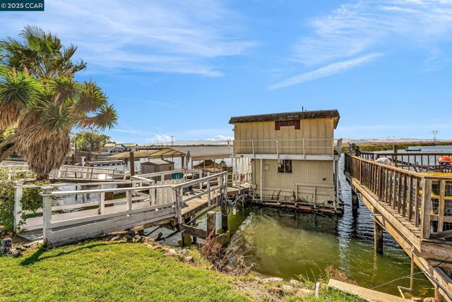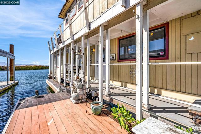 Great investment opportunity! This lot of land has a boat dock and a 1-bedroom, 1.5-bathroom floating home with breathtaking views, making it the perfect spot for a second home or getaway. You'll love the stunning views of Mt. Diablo right from your own place. Plus, there's a spacious storage garage for all your recreational gear, tools, or anything else you need to store. Build your second home on the lot. The floating home has been a vacation rental in the past, so it has great potential for extra income while giving you a fun escape!