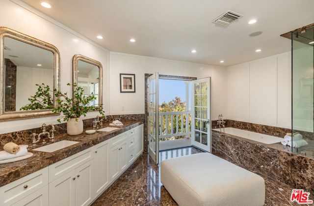 At the crest of the mountain, where city lights dissolve into the endless ocean, rises a South Hampton inspired Georgian Estate. Inside, soaring ceilings and walls of French doors flood every room with natural light, while rich dark hardwood floors ground the interiors in timeless elegance. The primary suite commands its own private wing, a sanctuary of serenity, while four guest suites and six bespoke bathrooms offer comfort and privacy for family and friends. At the heart of the home, a chef's kitchen flows seamlessly into a family room, an entertainer's dream designed for both intimate evenings and grand gatherings. Four dramatic fireplaces lend warmth throughout. Beyond the residence, manicured gardens frame a sparkling resort-style pool, and expansive terraces provide multiple settings for alfresco dining, sunset cocktails, and quiet reflection. This is more than a home, it is a legacy estate, crafted with impeccable provenance and positioned to capture the most breathtaking views of both city and sea. A once-in-a-lifetime opportunity to own a residence destined to be treasured for generations.