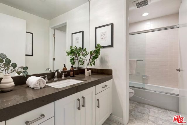 Introducing a rare Penthouse offering at The Somerset, one of Beverly Hills' most coveted full-service luxury residences. Nestled just off Burton Way & Wilshire Boulevard, The Somerset combines timeless elegance with resort-style amenities and an unbeatable location at the crossroads of luxury, convenience, and culture. This top-floor penthouse welcomes you with a stately double-door entry into a formal foyer lined with rich dark wood flooring, creating an immediate sense of refinement. Inside, an expansive floor plan unfolds with a sun-drenched living room featuring a fireplace, a formal dining area perfect for entertaining, and a bright breakfast nook adjoining a beautifully appointed kitchen. A private terrace offers seamless indoor-outdoor living with treetop, city, and tree-lined street views. Two generously sized ensuite bedrooms each feature custom walk-in closets and spa-inspired bathrooms with soaking tubs, glass-enclosed showers, and designer finishes. A separate laundry room with new HVAC equipment adds modern comfort and practicality. At The Somerset, residents experience true luxury living with 24/7 doorman and valet service, a newly renovated pool and spa, state-of-the-art fitness center, stylish clubroom for private gatherings, secure storage, and gated garage parking. This peaceful, well-maintained community is renowned for its quiet elegance, attentive service, and ideal location in one of the most prestigious neighborhoods in the world. Just minutes from your door, explore the world-class shopping of Rodeo Drive, the cultural charm of the Melrose design district, the vibrant nightlife of West Hollywood, and the business centers of Century City. Beverly Hills parks, tree-lined streets, fine dining, premier schools, and art institutions are all within easy reach offering a rare blend of tranquility, sophistication, and urban excitement. Whether you're seeking a serene retreat or a gateway to the best of Los Angeles, this penthouse at The Somerset delivers exceptional living in every sense.