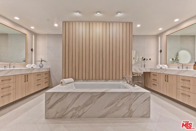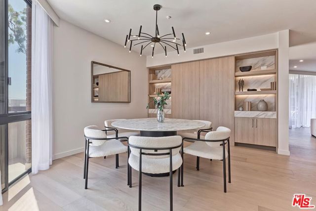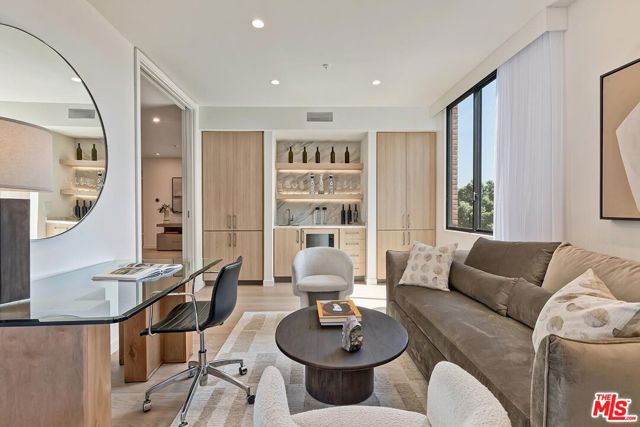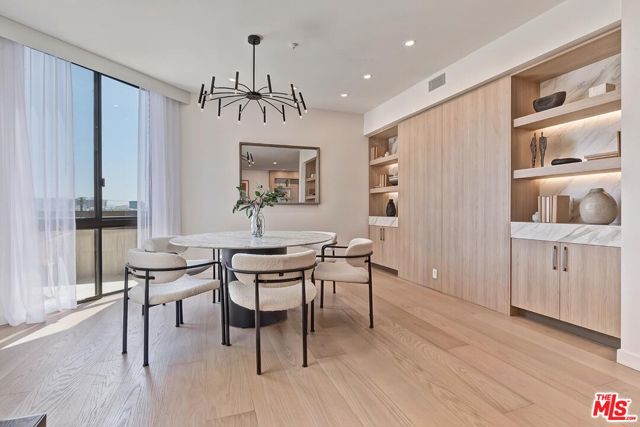 Presenting an exclusive opportunity for discerning buyers: a condominium at the esteemed IV Seasons North Condominiums in Beverly Hills. Reenvisioned by an internationally published and nationally award-winning architect, this residence features a tasteful aesthetic and soft color palette complemented by elegant architectural details. Upon entering through the formal foyer, you'll find a well-appointed living room with a custom fireplace and cabinetry, an adjacent formal dining room, and a gourmet kitchen equipped with top-of-the-line appliances, custom cabinetry, and a breakfast area. The expansive living and breakfast room terraces provide serene tree-top, city, and mountain views, enhancing the seamless indoor-outdoor flow of the residence. The primary suite serves as a private retreat, complete with dual custom walk-in closets and a spa-inspired bath with designer finishes, a soaking tub, a glass-enclosed stall shower, a linen closet, and a private water closet. The spacious secondary guest suite includes 2 closets and a modern en-suite bath. A versatile den offers space for a home office, media room, or additional living area. The redesigned in-unit laundry room adds convenience and houses new HVAC equipment. Residents of IV Seasons North Condominiums enjoy luxury amenities, including 24/ 7 doormen, valet parking, a newly updated pool and spa, a gym, and secure storage. The central Beverly Hills location offers proximity to the vibrant dining, and shopping scenes of Beverly Hills & Century City, West Hollywood's nightlife and dining, the upscale Melrose design and couture shopping district, and the arts and culture of Los Angeles.