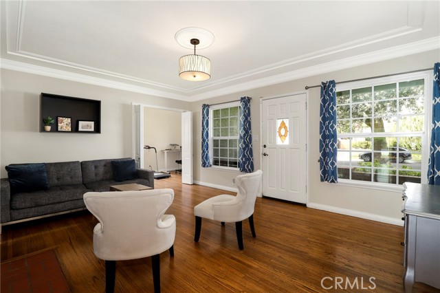 Charming Turn-Key Home in Prime Burbank Location Welcome to this beautifully maintained 3-bedroom, 1.5 bath home located in a desirable Burbank neighborhood, very close to excellent schools and local amenities. With great curb appeal, this home is on a quaint tree lined street and features a bay window, lush landscaping, and a spacious front porch perfect for relaxing .Step inside to a warm and inviting living room with a fireplace, crown molding, and a coffered ceiling. Gleaming hardwood floors flow through the living areas and bedrooms, creating a seamless, classic look. The expansive family room overlooks the oasis like backyard, complete with a sparkling pool, grassy play area with swing set, and a gazebo, ideal for entertaining. The updated kitchen boasts quartz countertops, stainless steel appliances, ample storage and a convenient desk. Additional highlights include central air & heat, washer and dryer in the kitchen, and a detached 2-car garage with a long driveway for multiple cars, that is being used for storage. Part of the garage features a large bonus room with laminate flooring, recessed lighting, and its own split AC/heating system, perfect as an office, playroom, or studio. This move-in ready gem combines charm, functionality, and location, don’t miss your chance to call it home!