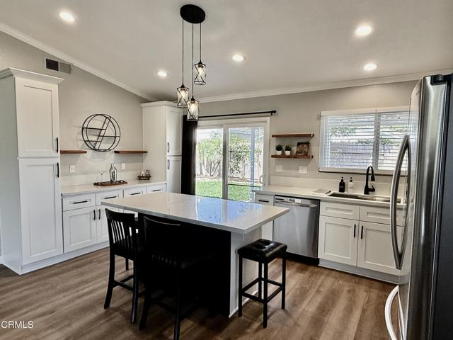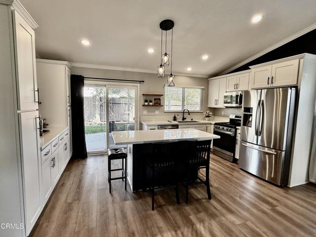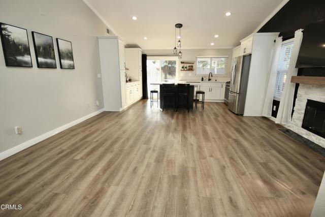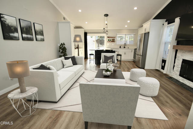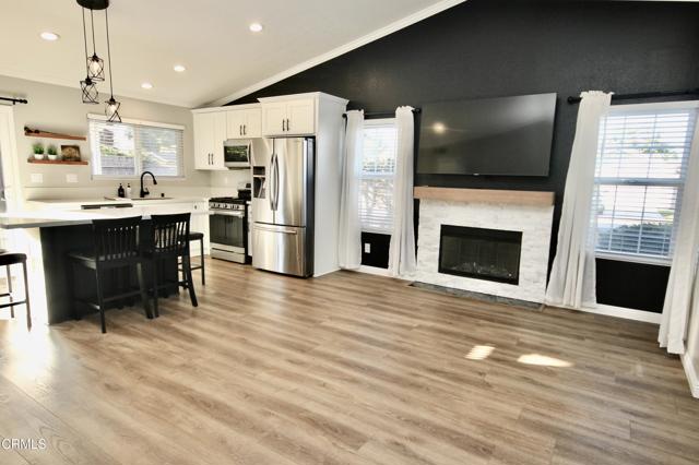 Beautiful Mission Oaks home situated on a desirable corner lot ideal for those seeking a move-in ready home. This inviting single story beauty offers a light and bright and open floor plan. The wall separating the spacious living room and kitchen has been removed to create a large great room, perfect for family gatherings. It also boasts a nice fireplace for cozing up to during the cold weather, upgraded woodlike flooring, beautifully remodeled bathrooms, jetted tub, and custom island kitchen featuring quartz countertops, stainless steel appliances, and additional cabinets with a pantry. The private rear yard with covered patio offers ample space for relaxation and entertainment. Additionally, the low Homeowners Association (HOA) fees include front yard maintenance, access to a community pool and spa, as well as RV parking. The home exudes a sense of pride of ownership and is undoubtedly a must-see. Conveniently located to nearby schools, shopping plaza, restaurants, movie theater, and easy freeway access.