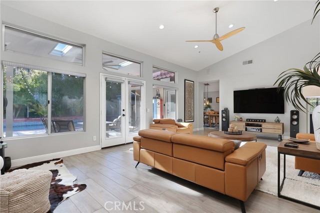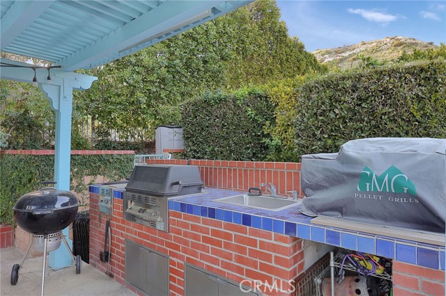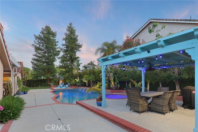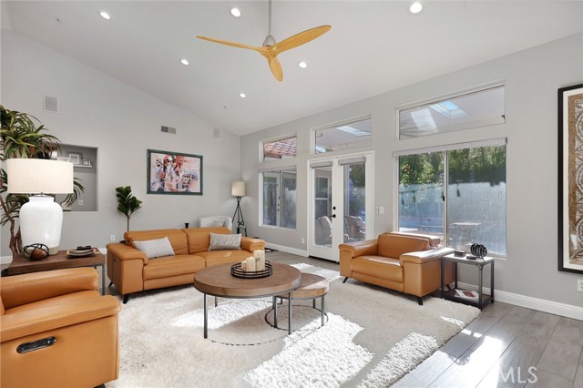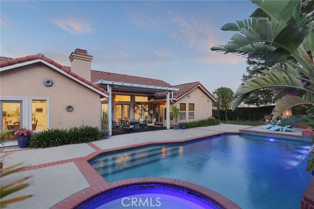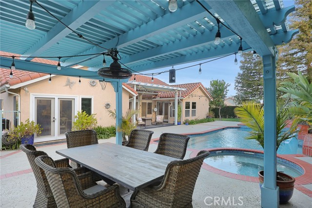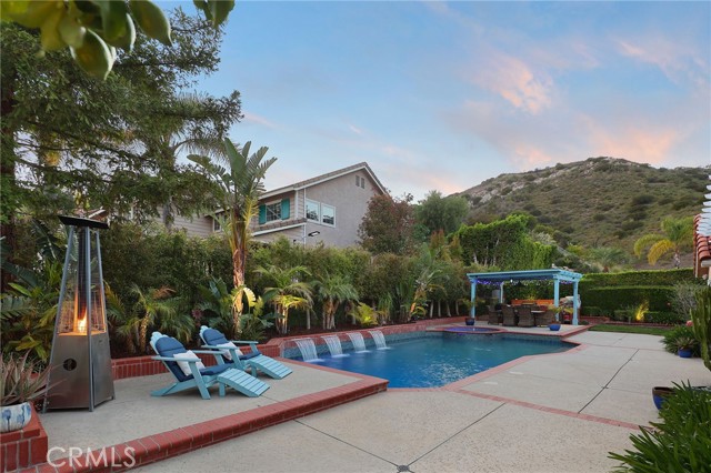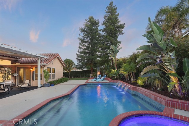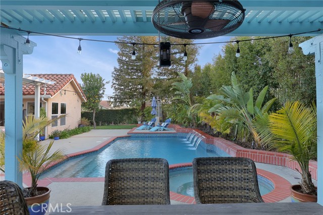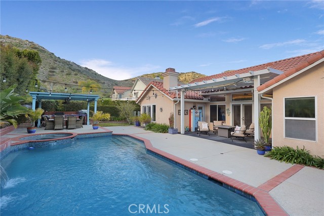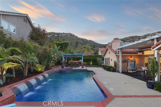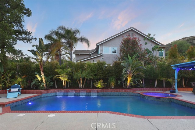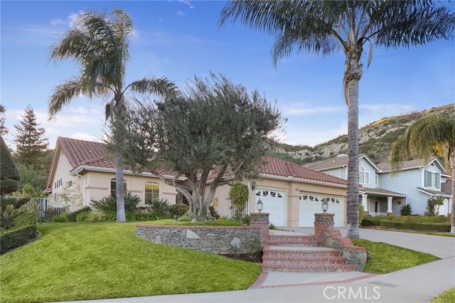 Exquisite single story home, ideally situated on a corner lot in the highly sought after "Stonegate Community" of West Hills. Enter through the double doors into a spaious living room with vaulted ceilings, Expansive windows and doors that through which the rooms are flooded with natural light. The chef's kitchen is the heart of the home, complete with a large center island, granite countertops, and newer stainless steel appliances. It seamlessly flows into the inviting family room where a cozy fireplace and wine refrigerator sets the perfect ambiance. The true primary suite is a peaceful retreat with lofted ceilings, a generous walk-in closet, and a spa-like en-suite bathroom featuring dual vanities, a soaking tub, separate shower-all overlooking the beautifully landscaped gardens. Thoughtfully upgraded and meticulously maintained, the home also offers three additional bedrooms and two full bathrooms, ideal for family or guests. Step outside to yourown private oasis, lushly landscaped grounds, two expansive covered patios with skylights and a ceiling fan, a built-in BBQ, and a stunning pebble tec pool and spa with cascading waterfalls. Enjoy serene views of the surrounding hill and an abundance of fruit trees, creating the perfect settin for both relaxation and entertaining. Located within the prestigious school district for Pomelo,, Hale, and El Camino School, and just minutes from Warner Center, Westfield Topanga, The Village, Calabasas Commons, top-tier shopping, parks, and scenic hiking trails-this home truly has it all!