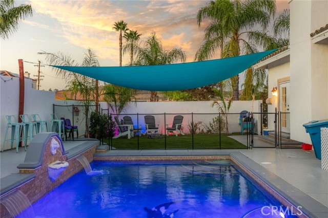 This POOL home checks all the boxes! It offers 4 bedrooms, 3 bathrooms, and a 3-car garage with extra tall ceilings—perfect if you’ve ever thought about installing car lifts or just need that extra storage space. Plus, the home has solar to help keep those energy bills low. Inside, you'll find a great open layout with high ceilings, porcelain tile floors, and three fireplaces throughout the home. The kitchen was fully remodeled and looks amazing with white cabinetry, granite countertops, custom backsplash, a large island with seating, stainless steel appliances, and a walk-in pantry. It opens right up to the family room and a cozy dining nook. The primary bedroom has its own fireplace, two closets with custom built-ins, and a large en-suite bathroom with dual sinks, a soaking tub, walk-in shower, and even a separate toilet and bidet area. Two of the bedrooms have mirrored closet doors, and the fourth is set up as a home office with built-ins and a Murphy bed—perfect for guests. Out back, you'll love the pool and spa, outdoor kitchen, and separate fireplace for entertaining. There’s also a large Alumawood-covered patio in the front with great views of the surrounding hills and mountains. Shutters throughout, laminate wood floors in the bedrooms, and laundry on the main level round it all out. This one really has a little bit of everything! If all of that wasn't enough, Canyon Lake is a private, gated community with all gates staffed with security 24/7. Amazing amenities including a 384 acre waterski/fishing lake, 20 parks most with beaches and playsets, basketball courts, baseball fields, tennis & pickle ball courts, equestrian center, 18-hole golf course, pools, dog park, golf cart friendly streets, slalom course, ski jump, restaurants, community events and so much more!! SELLER OFFERING SUBSTANTIAL CREDIT FOR BUYER'S RATE BUYDOWN AND/OR CLOSING COST CREDIT, please inquire for more information!