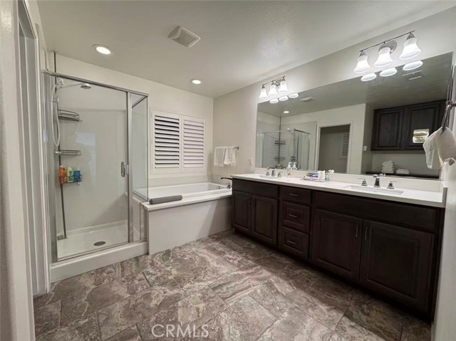 Charming 4-Bedroom + Den Home in Cedar Point, Chino*** Welcome to this beautiful two-story home in the desirable Cedar Point community of Chino. Featuring great curb appeal, a functional layout, and a prime location near schools, shopping, hospitals, and the police station, this home offers comfort and convenience for modern family living. Enjoy a spacious open floor plan with a gourmet kitchen boasting granite countertops, stainless steel appliances, a large island with bar seating, and a stylish backsplash. The kitchen flows into a bright dining area and living room with plantation shutters, recessed lighting, and a sleek ceiling fan—perfect for everyday living and entertaining. First Floor Includes: Private bedroom with en-suite full bath – ideal for guests or multi-gen living Powder room for guests Den – perfect as an office, playroom, or optional 5th bedroom Second Floor Features: Large master suite with walk-in closet and private retreat area; Junior suite with its own bath and walk-in closet; Third bedroom with access to a double-sink bathroom; Public record shows 4 bedrooms, but the home includes 4 full bedrooms plus a versatile den. Move-in ready and thoughtfully designed—don’t miss this Cedar Point gem!