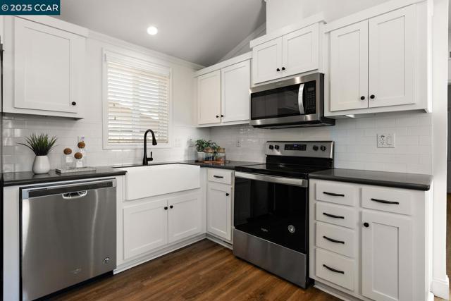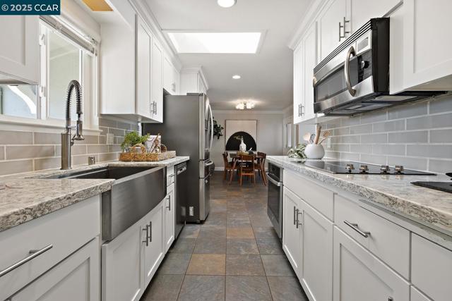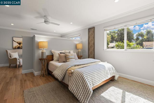 What more could one want, a home and an ADU plus a cul-de-sac location and large flat lot with privacy. The beautifully updated home offers 2 stunning updated bathrooms and a fabulous chef's kitchen, but the exterior is equally spectacular, from the landscaping, paver patio, garden and private setting to the under 1 year old roof and solar. Through the front door the slate floors invite one into the great room and the rich hardwood floors that extend down the hall and into the 3 spacious bedrooms plus the office/exercise area. The primary suite includes an oversized walk-in closet, accent shelving, a contemporary bath with spacious shower, white vanity, black and white decor. Next to the primary suite is an office or possible exercise space or nursery. Updated sunny kitchen, with skylight, features white shaker cabinets, SS appliances, slate floors, farm sink, stone counters and a large dining area for family or neighborhood gatherings. The great room, that opens to the deck and easy access to the ADU, has a fireplace, recessed lighting, hardwood floors. 4 year new ADU, with private entrance, 1 bedroom, full bath, kitchen, living room, vaulted ceilings, plank flooring, laundry, light filled.