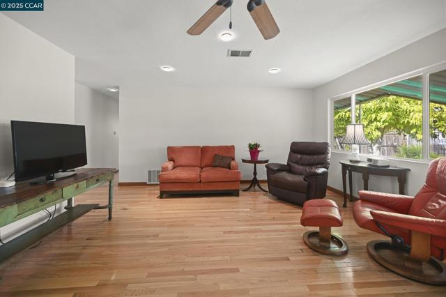 OPEN SUNDAY 1-4 Welcome home to the highly sought-after State Streets neighborhood in the Clayton Valley Highlands. This four-bedroom, two-bath home on a large corner lot is full of charm and potential. Step through the welcoming foyer and into the open living and dining rooms, where natural light, hardwood floors, recessed lighting, and a cozy wood-burning fireplace create the perfect setting for everything from homework nights to holiday celebrations. The eat-in kitchen features a garden window, new flooring, and a generous pantry, offering a great canvas to add your own style and updates. Four bedrooms with hardwood floors and ample closet space, along with two full baths, provide room for all plus flexibility for a home office, guest room, or workout space. Both bathrooms have been updated, including heated floors in the hall bath and a jetted tub in the primary suite. Sliding doors from both the family room and primary bedroom open to a large, flat backyard with endless possibilities for RV parking, an ADU, a swimming pool, or simply a great outdoor space to gather with friends and family. Energy-efficient features include dual-pane windows and central AC. All this moments from parks, walking trails, popular schools, shopping, and commute corridors. Welcome home!