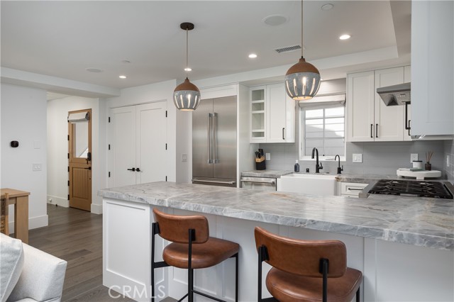 Set on a quiet street in the heart of Corona del Mar’s Village, 714 ½ Iris is a detached, stand alone back unit that combines quality, natural light, and thoughtful design. Completed in 2021 by Sonil Construction, the home offers a refined coastal aesthetic with clean lines, premium finishes, and effortless indoor-outdoor flow. The main level features an open floor plan filled with light, anchored by real hardwood flooring and a neutral palette that enhances the sense of space and calm. The kitchen is finished with quartzite countertops, stainless steel Thermador appliances, and custom cabinetry—designed for everyday living with a streamlined, elevated lifestyle. Upstairs, the primary suite offers vaulted ceilings, a walk-in closet, and a spa-like bath with a Victoria + Albert soaking tub, walk-in shower, and dual sinks. A secondary bedroom and full bath are situated on the main level, maintaining complete privacy. A private rooftop deck expands the living space, offering a place to unwind by the fireplace and enjoy the soothing sunset—or relax in the jacuzzi beneath open skies. The home is also prewired for a professional-grade sound and security system and secured with exterior gates equipped with keypad access, blending convenience with peace of mind. With no shared walls, private garage access, and a walkable location near beaches, shops, and restaurants, this residence offers a sophisticated take on Village living—low-maintenance, well-appointed, and effortlessly connected to the best of coastal Orange County.