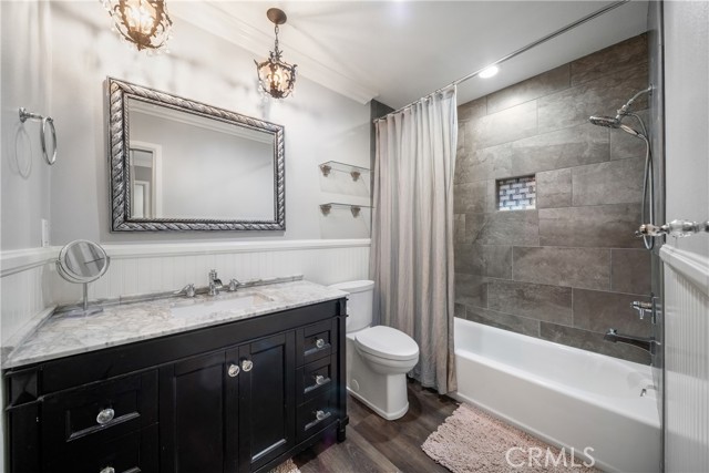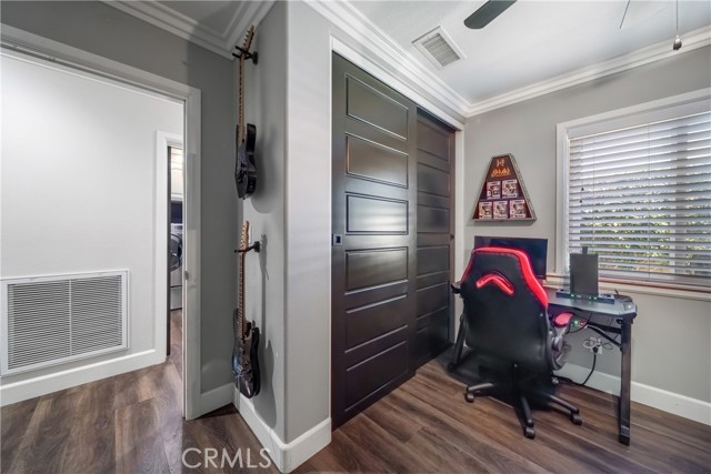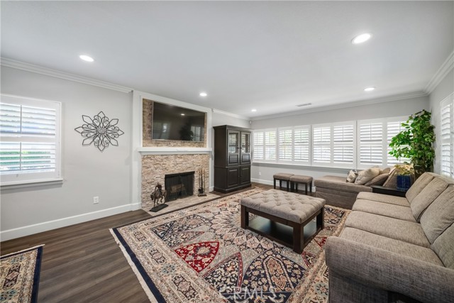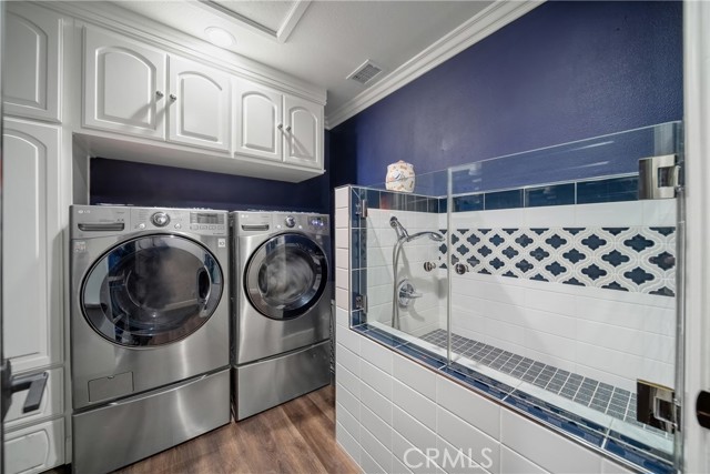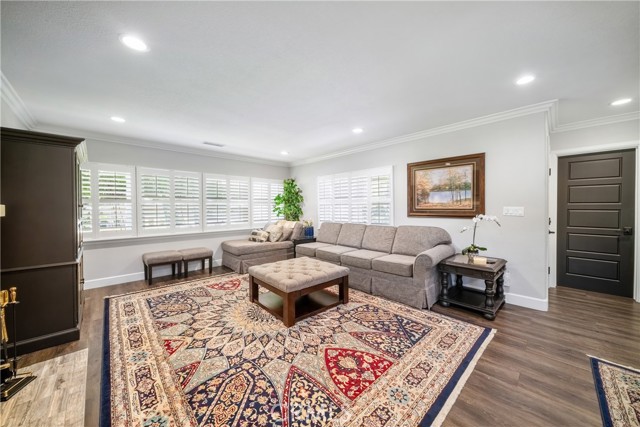 Updated 4-bedroom, 3-bath home offering over 2,000 square feet of well-designed living space. Features include luxury vinyl plank flooring, crown molding, plantation shutters, and freshly painted interiors. The open-concept layout connects the living, dining, and kitchen areas, creating a spacious and functional flow. All bathrooms showcase modern finishes. The oversized laundry room includes custom cabinetry and a built-in pet wash station. The primary suite offers a walk-in closet and en-suite bathroom. Dual HVAC systems provide year-round comfort. The exterior features a landscaped yard, garden bed, gazebo, basketball hoop, gated RV parking, and a two-car garage with built-in storage. Fully fenced for added privacy.