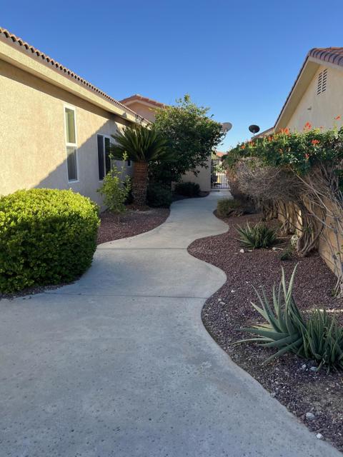 Welcome to Paradise Springs, a 55 and better gated community just North of Palm Springs, with low HOA dues of $162/mo. This 2 bedroom plus den home sits on a large lot (over 11,000 SF) with a large covered patio, this backyard oasis has 5 fruit trees, a lawn and many desert plants to enjoy all on a quiet cul-de-sac. Home includes a water softener, a tankless water heater and a separate laundry room. The clubhouse has a pool, 2 spas, billards and a gym for your enjoyment. Near-by, golf and restaurant available at the Mission Lakes Country Club. Other activities in the valley include, casinos, concerts, hockey, even a surf park. Lots to do or just relax in your piece of paradise.