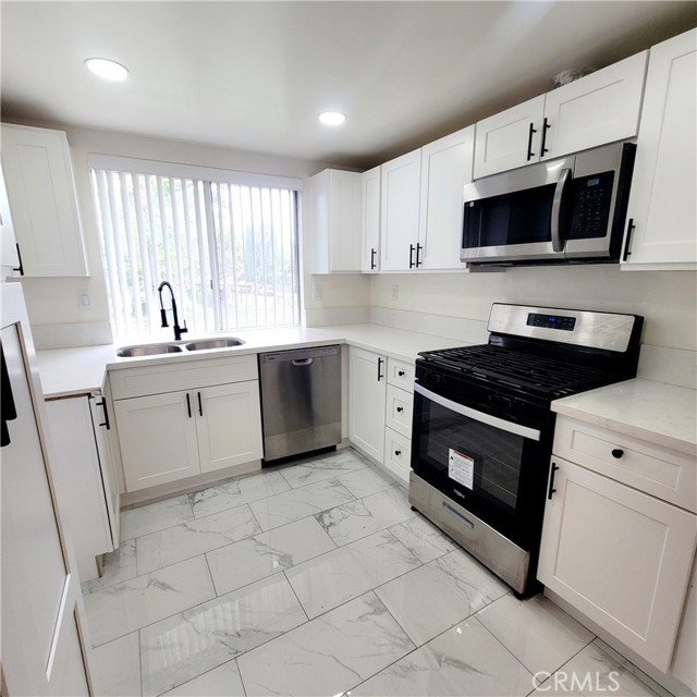 This gorgeous, turn-key townhouse is located in the beautiful, gated Sunset Crossing Community. This end unit has just one common wall and is situated in one of the best locations in the complex for both privacy and ease of access. It has been tastefully remodeled with all new interior paint, new laminate and porcelain tile flooring throughout, new kitchen cabinets with Quartz counter tops, new lighting fixtures, vertical blinds and so much more. It boasts 3 bedrooms and 3 recently renovated bathrooms with 1,262 square feet of living space. The attached two car garage provides direct access to the inside, plus laundry hook-ups and plenty of shelving. There is also a good sized private backyard patio perfect for relaxing outdoors. The association features a sparkling swimming pool, spa and clubhouse with BBQ grills and tables. The Sunset Crossing Community is centrally located just minutes to the 57, 60 and 10 freeways, Cal Poly Pomona, Mt San Antonio College as well as plenty of retail shopping and restaurants. Water and trash are included in monthly HOA dues.