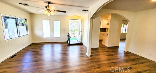 Charming & move-in ready 2-bedroom, 2-bath mobile home located in a beautifully maintained 55+ community. This charming residence has been thoughtfully updated with modern finishes and is situated in a serene park that offers a resort-style lifestyle | Step inside to discover a bright, freshly painted interior featuring brand-new vinyl flooring and recessed lights throughout. The remodeled kitchen is a chef’s dream, showcasing new cabinetry, gleaming quartz countertops, and newer stainless steel appliances. A cozy den just off the kitchen provides the perfect spot for a home office, reading nook, or extra living space. | Both bathrooms have been tastefully updated with new vanities and tile flooring. Enjoy year-round comfort with central air conditioning and forced air heating. A washer & dryer combo is included with the sale! | The fully fenced yard is ideal for relaxing or gardening, complete with fruit trees and mature plants. This home offers privacy, style, and comfort in equal measure. | Community amenities are top-notch and include a highly upgraded clubhouse with a modern kitchen, spacious sitting area with a large TV, a library/computer room, pool, spa, gym, BBQ area, laundry facilities, and a fully fenced dog park. Pet-friendly and welcoming, this park provides everything you need for an active and enjoyable lifestyle. | Space rent is $1,450/month. Motivated seller eager to make a deal! Don’t miss the opportunity to enjoy low-maintenance living in a vibrant and friendly 55+ community!