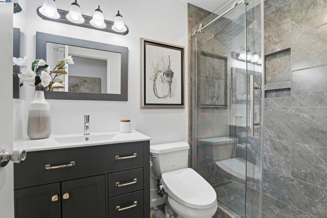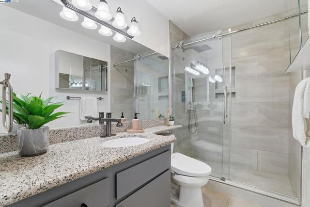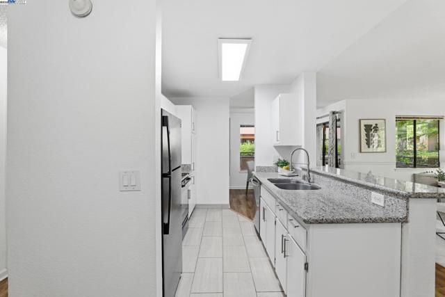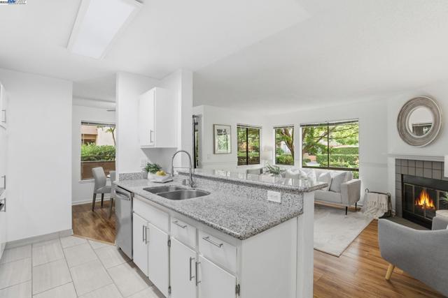 Welcome to this adorable end-unit condo perfectly located in the best part of the development next to a central courtyard with views of a water feature fountain, situated in central Fremont, near Lake Elizabeth Central Park! This is a well-cared for and beautifully updated 2-bedroom 2-bathroom ground floor unit. The living room is open to the dining area and features a lovely fireplace, large picture windows, and a sliding glass door to the outdoor patio. The updated kitchen features granite counters, electric cooktop, dishwasher, stainless-steel sink, breakfast bar, and ceramic tile flooring. Both bathrooms are completely remodeled with luxurious features including walk-in showers with sliding clear glass shower doors and tile shower walls, tile flooring, granite vanity counters, and updated lighting. Other features include luxury vinyl flooring, in-unit laundry, and underground parking. Enjoy the community amenities including a pool, a club house, and tennis courts. Easy access to Hwy 84, 680 and 880 for convenient commute to Facebook, Google, Silicon Valley, Peninsula or San Francisco. Why rent when you can own this beautiful unit and have it all?