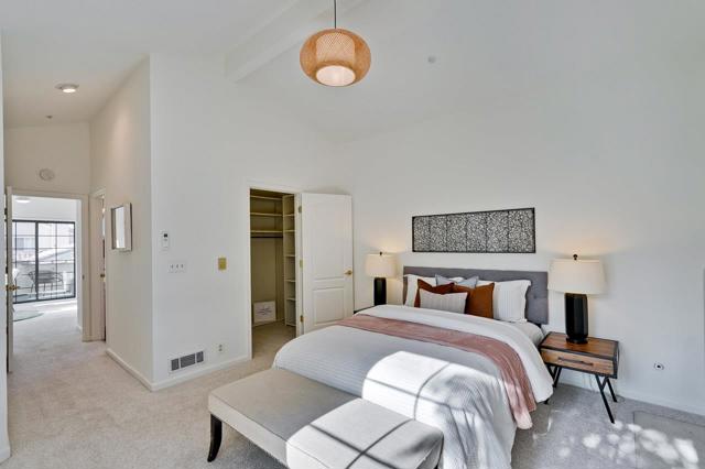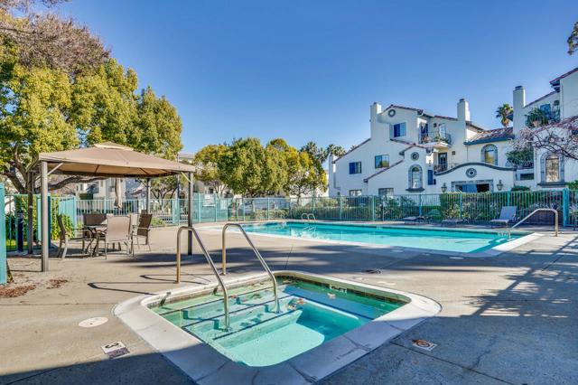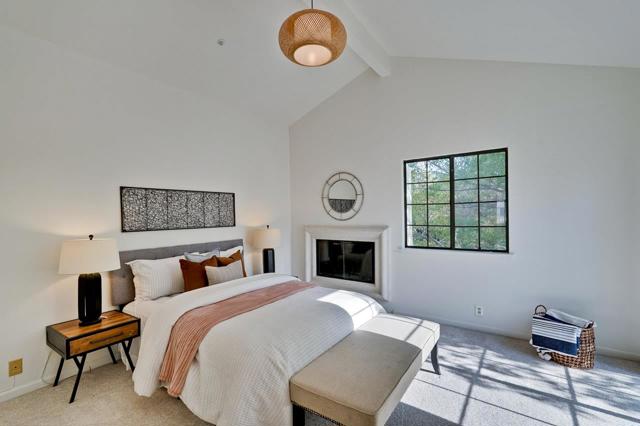 Exceptional End-unit townhome-style condo, nestled in Andalusia Gated community in the Central Fremont. Spanning 1,578 Sq.Ft two-story floorplan, 2 Beds, 3 Full Baths & a bright loft perfect for home office, or creative studio. * Dramatic living room w/soaring vaulted ceiling, a warm fireplace; * Chef's kitchen complete w/SS appliances, Gas range, Refrigerator, plenty of storage cabinets, pantry. Sunny dining area framed by large garden window w/custom remote-controlled solar shades; * Primary Suite is boasting its own vaulted ceiling, fireplace, spacious walk-in closet; * Comfort zoned Heating throughout the house and individual combo A/C & Heating units in each bedroom; * Laundry conveniently located on the top floor (washer & dryer are provided); * Ample storage space located off the veranda-style upper, also niches within the private secondary stairwell and providing easy access between upper balcony, kitchen to attached garage. * 3 private Balconies; * Attached garage plus a dedicated 2nd parking space; The resort-style HOA amenities include pool, spa, clubhouse, plus covers Water, Water Heating, Roof, Trash, Hazard Insurance and Gated security. Prime Location: nearby Lake Elizabeth, Central Park, Fremont Library, Fremont Hub. Easy access to BART & Fwys 880, 680, 84.