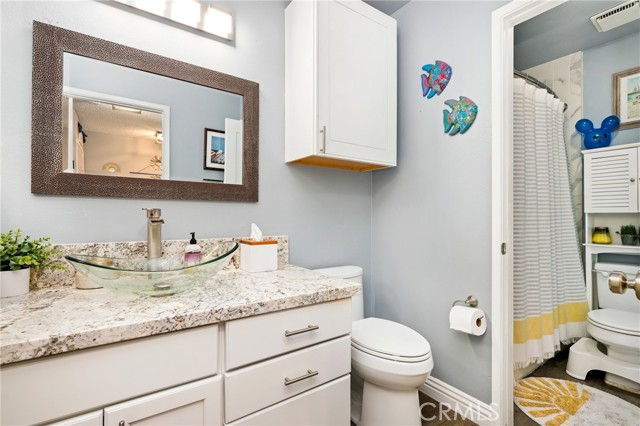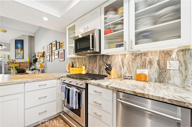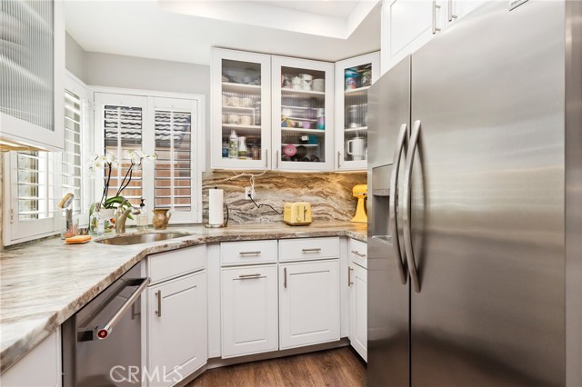 Welcome to 16962 Westwood Lane #14, a serene retreat in the desirable Millstream community of Huntington Beach. Bathed in natural light, this residence boasts soaring vaulted ceilings and a spacious living area anchored by a charming brick fireplace. The open-concept design flows seamlessly into the dining area and upgraded kitchen, featuring white cabinetry, leathered granite countertops, stainless steel appliances, and a stylish breakfast bar. Step outside to your private balcony, where views of tranquil streams and lush landscaping create a peaceful backdrop for morning coffee or evening relaxation. The primary suite offers comfort with a generous closet and spa-inspired ensuite bathroom. A versatile secondary bedroom with its own powder and shared bath access enhances livability. Residents enjoy resort-style amenities, including a sparkling pool, spa, and tennis courts—all just minutes from Huntington Beach’s sandy shores and vibrant coastal lifestyle.