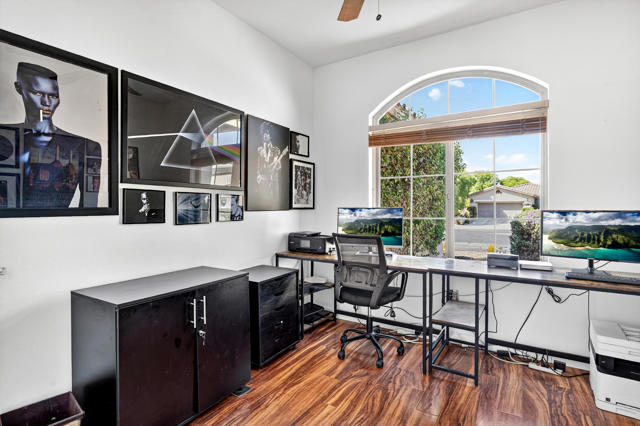 Welcome to this charming San Ysidro floor plan offering 1,463 sq. ft. of living space in the active 55+ community of Sun City Shadow Hills. Nestled on a quiet cul-de-sac, this thoughtfully designed home features an open great room with recessed lighting, laminate flooring, and abundant natural light that enhances the inviting atmosphere. The kitchen boasts granite countertops, rich cabinetry, and bar seating at the breakfast counter, flowing seamlessly into the dining area with sliding glass doors that open to the backyard. The spacious primary suite includes a walk-in closet and en suite bath, while the guest bedroom and additional bath provide comfort for visitors. Step outside to enjoy the extended covered patio and low-maintenance landscaping, creating a private outdoor retreat. Just a 60-second walk from the dog park, this home is perfect for pet owners. As a resident of Sun City Shadow Hills, you'll have access to two clubhouses, two championship golf courses, fitness centers, pools, tennis and pickleball courts, and countless clubs and social activities--making every day feel like a vacation.