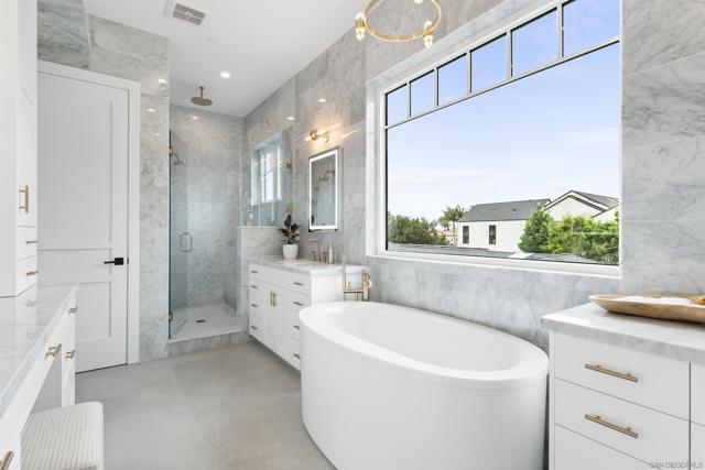New Construction in La Jolla steps to the sand, Windansea Surf & Village! Experience the ultimate luxury 'Lock-and-Go' coastal lifestyle in this brand-new 5-bedroom beach house offering seamless indoor-outdoor living from the private California Room complete with a brick gas fireplace, TV niche, and built-in BBQ to relax after a day in the sun. Designed for effortless coastal living & multi-generational hosting, this home features an elevator to all levels including the rooftop deck with ocean views and lower level media game room for endless entertaining complete with a wet bar, vertical wine column and beverage fridge. Spanning approximately 3,538 sq ft, this residence showcases exceptional craftsmanship, alder beamed ceilings, and custom millwork throughout. Sustainability meets sophistication with Solar, Tesla Powerwall, EV charging and CONTROL4 Smart Home A/V/Lighting/Security integration PLUS the gourmet Thermador lined kitchen includes a separate walk-in prep pantry with its own sink and dishwasher—ideal for entertaining. Each Bedroom & Bathroom feels like a private spa retreat, wrapped in natural stone slabs, Kohler fixtures and designer tilework. Vaulted Alder-beam ceilings, warm interiors, and coastal contemporary architecture come together to create a truly rare La Jolla living experience—where every detail has been curated for comfort, elegance, and ease. Ideally positioned west of La Jolla Boulevard in the coveted Beach Barber Tract—just steps from Windansea Beach, La Jolla Village restaurants, the Sunday farmers market, and boutique shops. SEE MORE FLOORPLAN & CRAFTSMANSHIP. Attention to detail defines this new construction in La Jolla, showcasing sleek black-and-white lines, copper accents, and custom washed brickwork surrounding the lush private entry, backyard, and covered California Room with outdoor fireplace, TV niche, and BBQ. Inside, the Living/Kitchen area impresses with vaulted beam ceilings, tongue-and-groove millwork, and wide-plank oak flooring throughout. The chef’s kitchen features Alder cabinetry, a quartz-slab island, Thermador appliances (36†fridge, 48†six-burner range, Stanisci range hood), a Kohler farmhouse sink, and a walk-in prep pantry with its own dishwasher and sink. The lower-level media/game room is built for entertaining—complete with integrated A/V, surround sound, wet bar, 18†Thermador wine column for ~50 Bottles, and beverage fridge. Upstairs, the primary suite offers vaulted alder-beam ceilings, a custom walk-in closet ready to customize, and a spa-like bath with freestanding soaking tub, rainfall shower, dual vanities, and motion-lit mirrors. ADDITIONAL HIGHLIGHTS include a walk-in laundry room, solar with Tesla Powerwall, 2-car garage with EV outlet, BBQ cookstation, outdoor beach shower, and Control4 Smart Home + Lutron lighting system—a seamless blend of coastal charm and cutting-edge luxury.