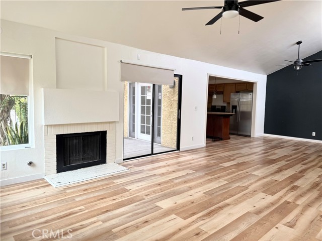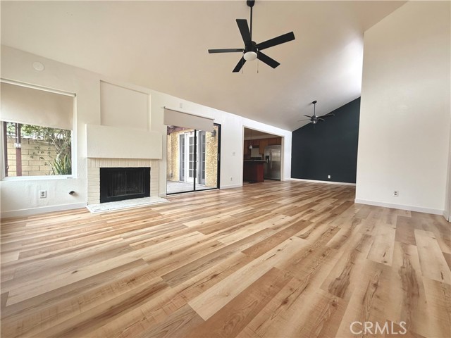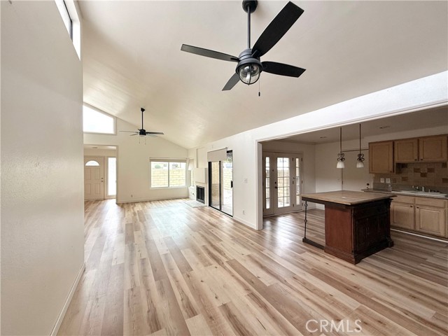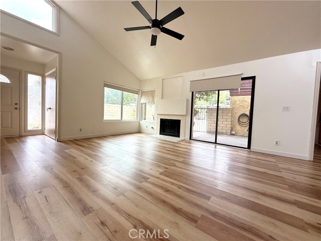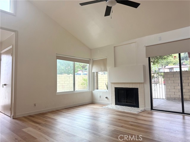 Welcome to this beautiful and spacious 2-bedroom, 2-bathroom townhome featuring an attached 2-car garage plus an additional assigned parking space. This corner unit offers privacy with only one shared wall and boasts an open floor plan filled with natural light. Inside, you’ll fall in love with the cathedral ceilings, newer paint and flooring, recessed lighting, and a cozy fireplace in the living room. The kitchen, complete with an island, opens to the patio through elegant French doors, while the living room also provides access with a sliding glass door, creating a seamless indoor/outdoor flow. The spacious patio is a perfect retreat, with a Meyer lemon tree and gutters for added convenience. Appliances including a dishwasher, stove, refrigerator, washer, and dryer are all included, making this home truly move-in ready and just for you. Situated in a peaceful, clean, and well-kept community in La Puente—close to parks, schools, and shopping.