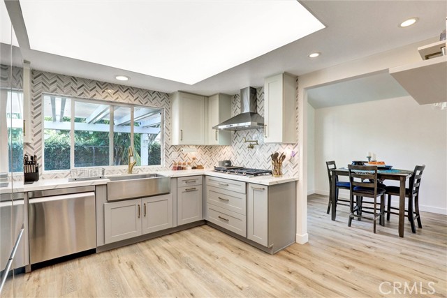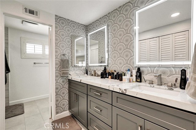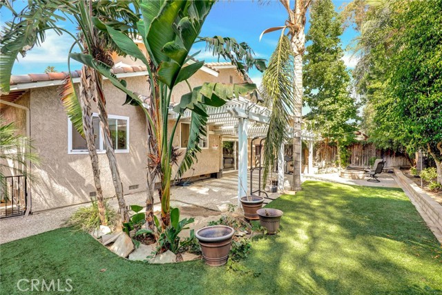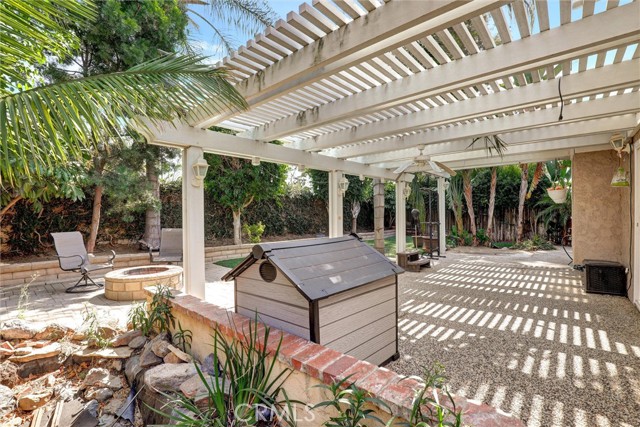 Must See - Located on a cul-de-sac in the Serrano Park community, this 4-bedroom, 3-bath, two-story home was remodeled in 2023 including the kitchen, flooring, plumbing, and electrical, and is move-in ready. The main level features a double-door entry, vaulted ceilings in the living and dining area, and a remodeled kitchen with quartz counters, gas stovetop with pot filler, and stainless-steel appliances (2023). Additional upgrades include a roof replacement in 2021, dual-paned windows, Nest thermostat, artificial turf in the front and back, updated furnace and refurbished AC approximately eight years ago, recessed lighting, insulated garage door with updated Wi-Fi motor, and leased solar panels to be assumed by the buyer. The first floor also includes a bedroom and full bath with shower, while the upstairs bathrooms come with lighted anti-fog mirrors, Bluetooth exhaust fans, and modern finishes. The backyard features turf and drought-friendly landscaping, a koi pond, Alumawood patio cover, paver firepit and conversation area, pebble tech slab, and raised planters. Serrano Park HOA amenities include two pools, four tennis courts, clubhouse, BBQ area, tot lot, and greenbelts with walking trails, with convenient access to nearby parks, shopping, dining, and schools.