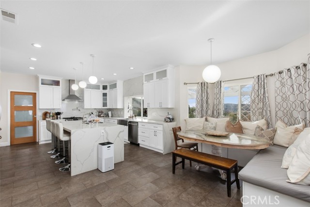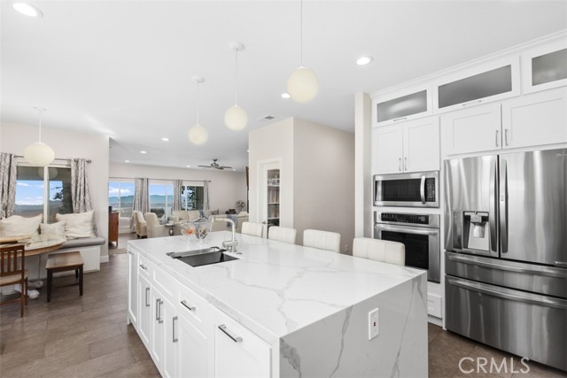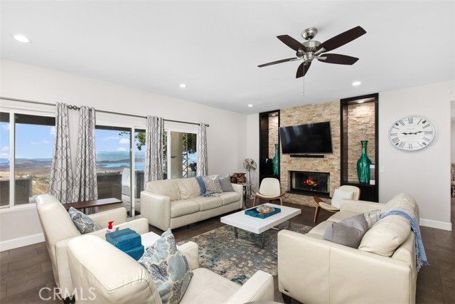 Stunning view, fully upgraded peaceful and mesmerizing ambiance in this secluded estate overlooking incredible mountains, hills, and Lakeview over a two-acre lot. This home is unlike any other home in the market with its grand entry, high ceiling, and open floor plan. There are views from almost every window in the home. Although this home offers a dramatic multi-level appearance, the master bedroom and two bedrooms are located downstairs. Upstairs has a loft and two spacious bedrooms with an oversized balcony overlooking a stunning lake and Mountain View. Bring your vehicle, RV/trailer, or boat there’s a 3-car garage with a bathroom and wide parking. There are simply too many features to list such as a dual water heater, unique etched windows, an intercom throughout the house that plays music, a dual fireplace, and even a third fireplace in the master bedroom! Italian porcelain floors throughout downstairs. Semi-custom kitchen cabinets with custom quartz countertop and large walk-in pantry. Come observe the beautiful Koi Pond, and waterfall while sitting in the gazebo. Turn on the outdoor built-in Bluetooth speakers while you’re making your pizza in the huge pizza oven. Make this your lifestyle choice away from the hustle and bustle of daily life, Cloe to major shopping and freeways. Come see this beautiful home to believe how amazing it is!