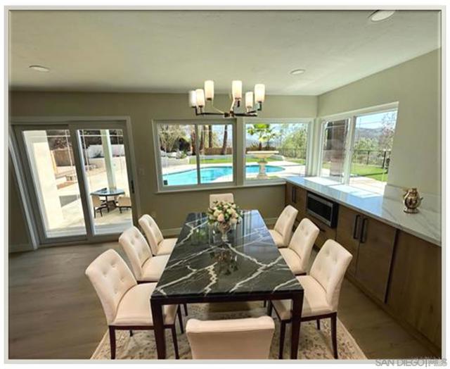 WANT TO AVOID THE HUSTLE AND BUSTLE OF A CROWDED CITY LIFE? THIS IS TRULY A PRIVACY GEM, FULLY REMODELED HOME, WITH PANORAMIC VIEWS TO ENJOY FROM EITHER YOUR LIVING ROOM, KITCHEN/BREAKFAST AREA, OR BEDROOM. THE PROPERTY SITS ON OVER AN ACRE AND ATOP GEM HILL LN, SURROUNDED IN PRIVACY AND TREES! WIND YOUR WAY UP THIS SEMI-RURAL NEIGHBORHOOD ROADWAY, WITH NO STREET LIGHTS TO BLOCK YOUR VIEW OF THE STARS, BUT BE WITHIN 35 MINUTES OF MOST ANYWHERE YOU NEED TO GO IN SAN DIEGO--FROM LA JOLLA SHORES, TO DOWNTOWN SAN DIEGO, AND LINDBERGH INTERNATIONAL AIRPORT. FISHING AND BOATING JUST MINUTES AWAY AND MILES OF HIKING TRAILS A FEW BLOCKS NORTH (SEE MAP IN PHOTO GALLERY.). NEWLY REFINISHED POOL FOR ENTERTAINING. TWO FIREPLACES, CENTRAL AIR, ALL NEW APPLIANCES, A HOST OF NEWLY BUILT IMPROVEMENTS AND EXTRAS (SEE SUPPLEMENT BELOW). 4TH BEDROOM ORIGINALLY A DEN, NOW CONVERTED WITH NEW CLOSET, WITH EXTRA 1/2 BATH ADDED BY PREVIOUS OWNER. VIRTUAL STAGING USED WITH PHOTOS. SELLER TO CONSIDER OFFERS BETWEEN $950,000-$1,050,000. New 200 amp electrical service 50 amp plug in the garage for electric cars All the wiring has been replaced, outlets, switches etc upgraded with ground wires. Can lighting throughout All new appliances pool equipment refreshed, new filter mesh New pool plaster, tile and coping New skimmer Automatic pool filler New roof Fresh paint inside and out All new hard flooring, same throughout Master bathroom Double sinks New tub in full bath All New tile in master Glass door from master bedroom to patio All new lighting fixtures Deck for jacuzzi Two fireplaces Open beam ceiling is insulated All new cabinetry, wood grain Air conditioning fully serviced Ducting re insulated New drain line to septic All new plumbing Dual pane windows with bevel glass on the inside for easy cleaning New garage door opener New ceiling fans with remotes 100 ft rv / trailer parking New shaded private patio. Slab for jacuzzi. Charge plug for electric car. Epoxy garage floor