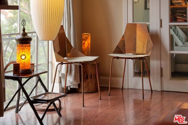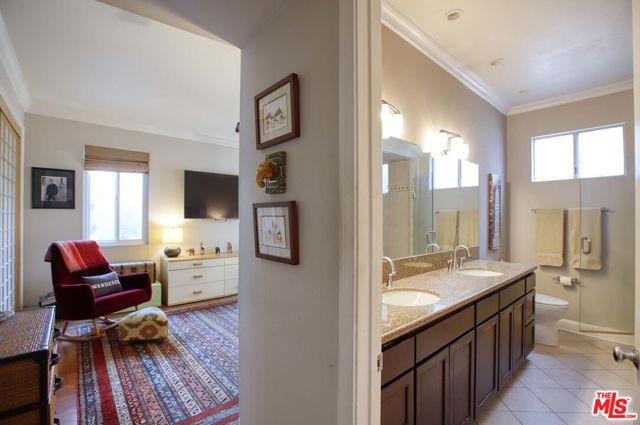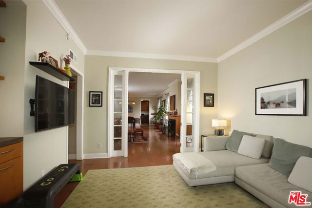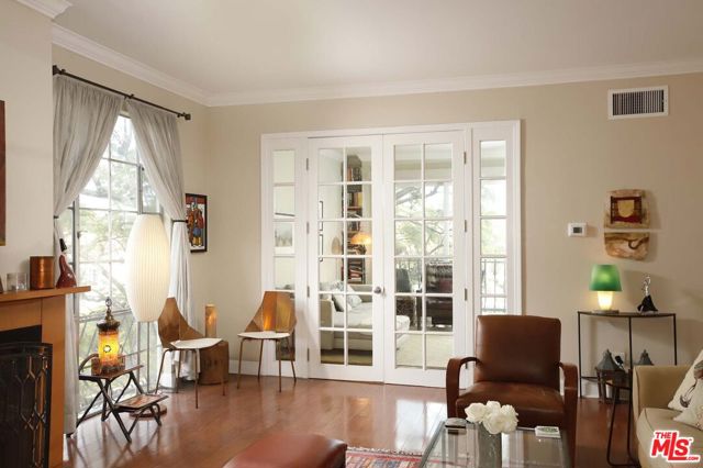 Beautiful and spacious 2 bedroom 2 bath condo located in a desirable Beverly Grove location, close to The Four Seasons, Beverly Hills, West Hollywood, Bristol Farms and Cedars-Sinai Medical Center. Charm and sophistication abound throughout the versatile open floor plan, highlighted by crown moldings, rich wood floors, mantled fireplace and is bathed in natural light from the floor up windows. You'll love preparing meals in the gourmet kitchen which features stainless steel appliances and more than ample counters and storage. Highlights of the spacious primary suite include a spa-like bathroom with dual vanity, large tub with separate shower and two very sizable closets with the walk-in leading to the conveniently located laundry room. The equally spacious second bedroom with stylish French doors can also be used as a media room or office, has a large walk-in closet and features a sliding glass door that leads out to a lovely balcony. Condos in this building sell quickly as there are only 6 dwellings, all corner units, and the location can't be beat!