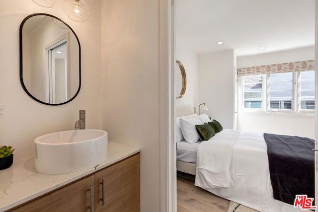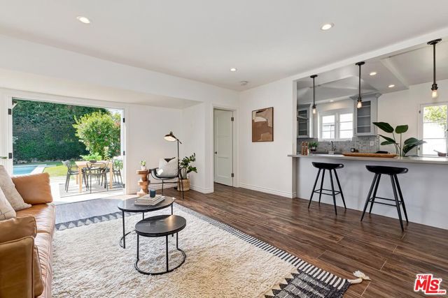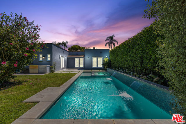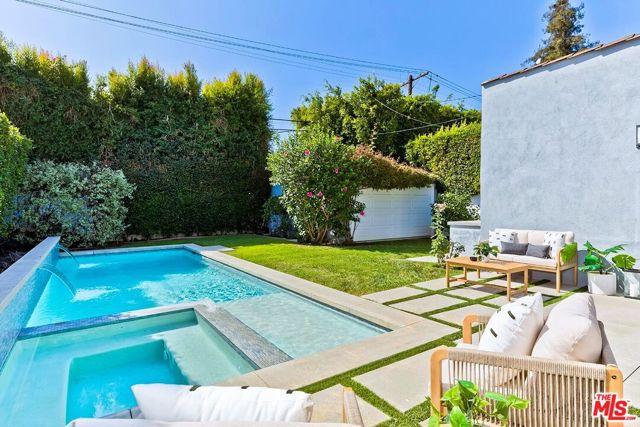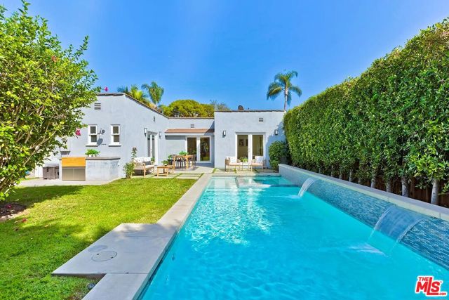 Welcome home to this beautiful sunlit pool residence, perfectly situated on a tree-lined street in the highly desired South Carthay neighborhood. Step outside to your private backyard oasis where an expansive sparkling pool with waterfall features, a luxurious spa, and a hardscape patio, built-in gas barbecue grill area along with an array of citrus trees create the ultimate setting for relaxation or lively gatherings. Casual sophistication defines this home, showcasing the best of California's indoor/outdoor lifestyle. The generous living room is bathed in natural light, accented by expansive windows, hardwood-style flooring, and a cozy fireplace. A well-appointed kitchen with ample counter space and pantry storage opens seamlessly to the substantial family room, an ideal setting for entertaining. The primary suite serves as a serene retreat, featuring French doors that open directly to the pool and spa. The newly updated Zen-inspired ensuite bath offers a dual vanity, a spacious walk-in shower, and a considerably sized walk-in closet. Two additional comfortable bedrooms and one-and-a-half baths complete the main living spaces. Updated systems throughout the home add peace of mind and modern convenience. There are laundry hookups inside as well as the detached finished garage provides additional laundry facilities and abundant bonus space, perfect for an office, studio, or poolside retreat. A California basement offers additional storage options. All this in an unbeatable central location, just moments from Beverly Grove, Miracle Mile, Mid-Wilshire, and Beverly Hills.