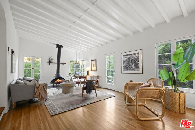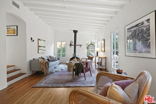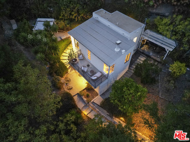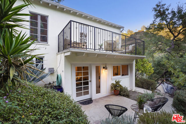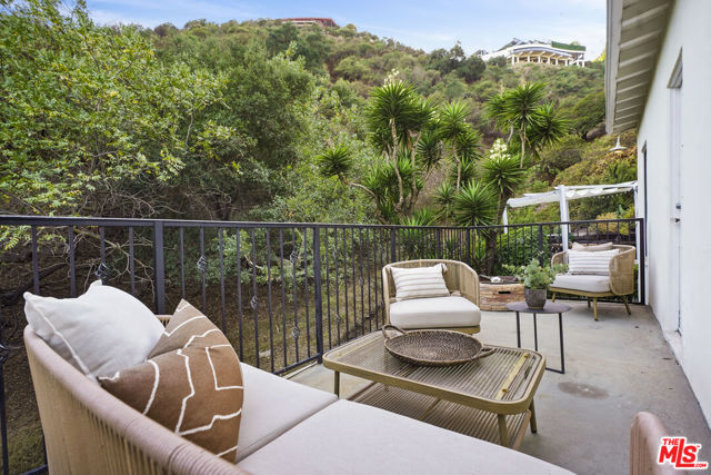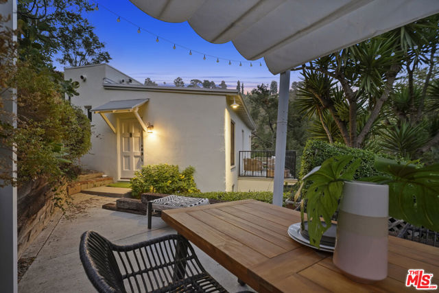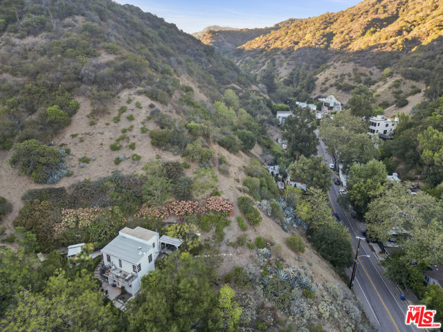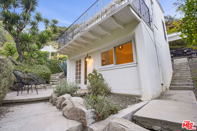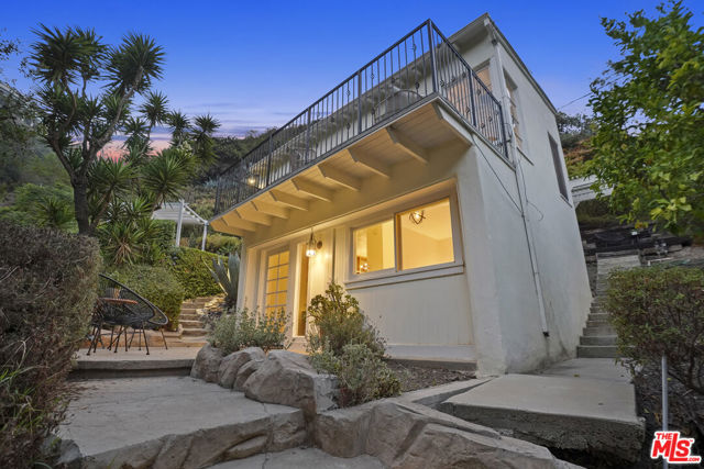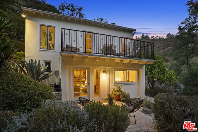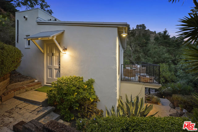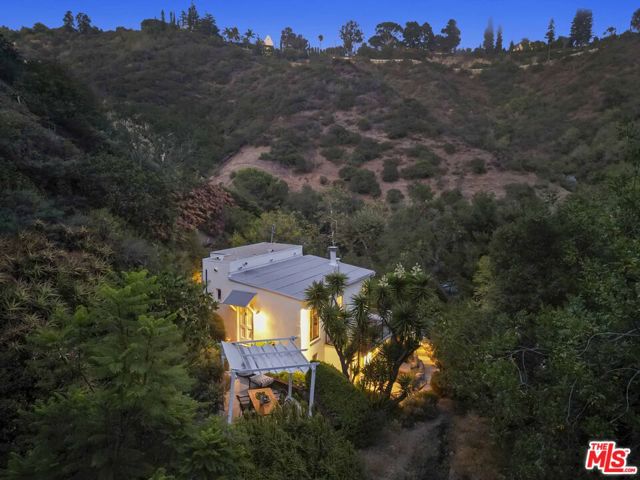 Presenting an idyllic, secluded urban retreat nestled high in the scenic hills of Bel Air. A creative haven once the home of renowned painter, sculptor, and surfboard designer Frederick Wardy. Crowning a near 1/3 acre lot, the home resides in divine harmony with its vast, verdant, organic environment. Private. Tranquil. Serene: The epitome of peaceful seclusion in complete unison with nature. Boundless, breathtaking views of the surrounding canyon are showcased from every vantage point. This 1930's California bungalow has been updated with the design and amenities for easy relaxed living and entertaining. Vaulted beamed ceilings of the living room soar above beautiful wood floors warmed by a floor to ceiling fireplace. French paned doors and windows throughout bring the outdoors in and suffuse the space in natural light. The crisp, bright kitchen features a breakfast nook, perfect for relaxed morning coffee. The string lit covered patio lends itself ideally to the southern California lifestyle of al fresco dining and limitless outdoor entertaining all while taking in the extraordinary vistas. The home enjoys easy access to both the Westside and the Valley and is located just minutes from Sunset Blvd., UCLA and all the best of what famed Bel Air has to offer. With its blend of history, modern updates, and sublime hillside setting, this property is a valued opportunity to enjoy privacy and quietude in one of Los Angeles' most iconic neighborhoods. Welcome!