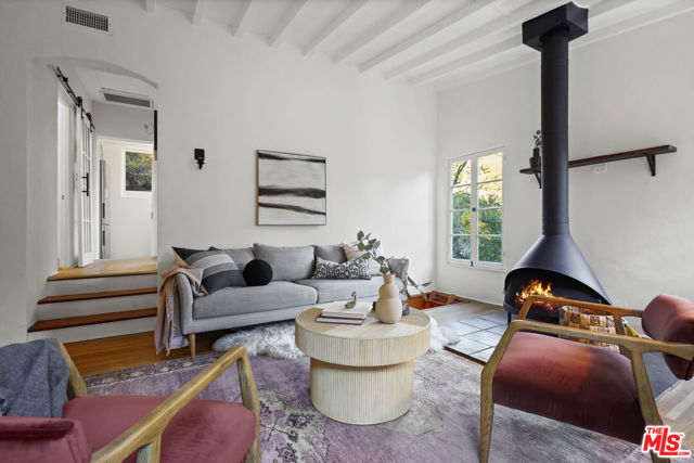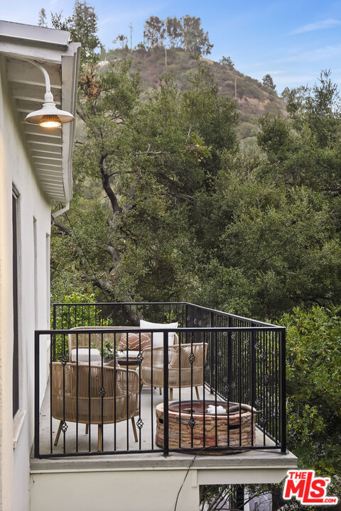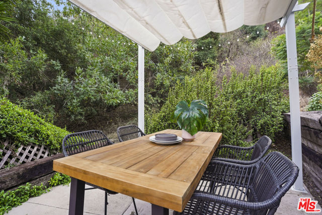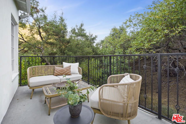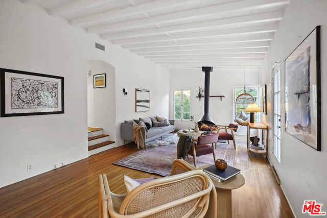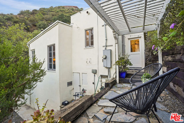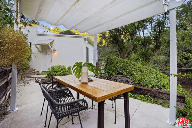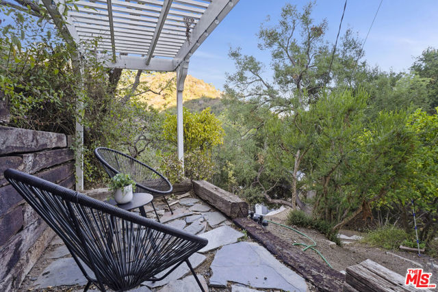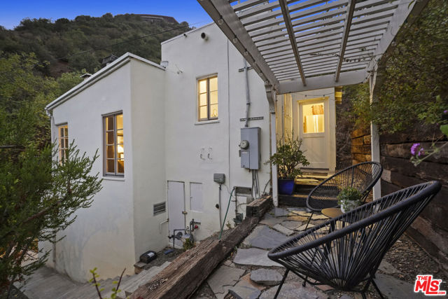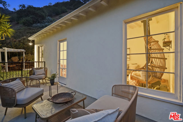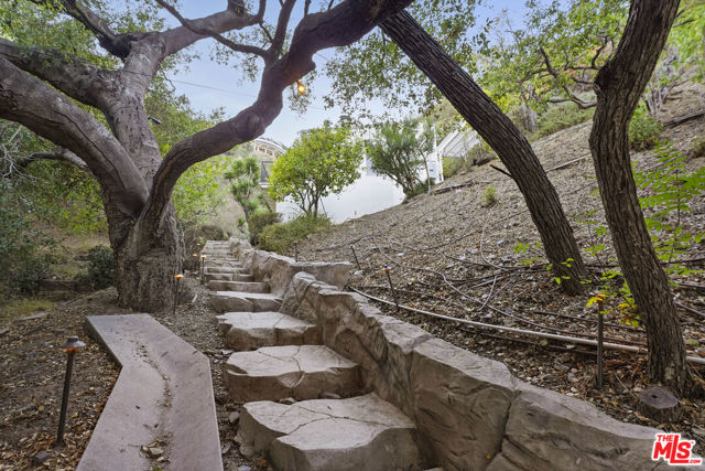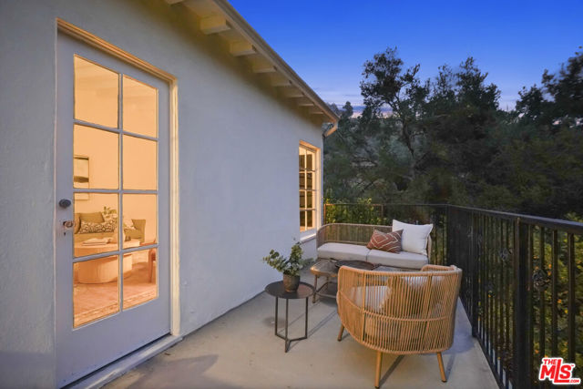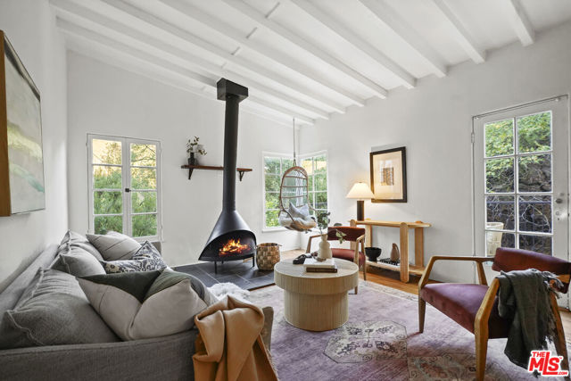 Presenting an idyllic, secluded urban retreat nestled high in the scenic hills of Bel Air. A creative haven once the home of renowned painter, sculptor, and surfboard designer Frederick Wardy. Crowning a near 1/3 acre lot, the home resides in divine harmony with its vast, verdant, organic environment. Private. Tranquil. Serene: The epitome of peaceful seclusion in complete unison with nature. Boundless, breathtaking views of the surrounding canyon are showcased from every vantage point. This 1930's California bungalow has been updated with the design and amenities for easy relaxed living and entertaining. Vaulted beamed ceilings of the living room soar above beautiful wood floors warmed by a floor to ceiling fireplace. French paned doors and windows throughout bring the outdoors in and suffuse the space in natural light. The crisp, bright kitchen features a breakfast nook, perfect for relaxed morning coffee. The string lit covered patio lends itself ideally to the southern California lifestyle of al fresco dining and limitless outdoor entertaining all while taking in the extraordinary vistas. The home enjoys easy access to both the Westside and the Valley and is located just minutes from Sunset Blvd., UCLA and all the best of what famed Bel Air has to offer. With its blend of history, modern updates, and sublime hillside setting, this property is a valued opportunity to enjoy privacy and quietude in one of Los Angeles' most iconic neighborhoods. Welcome!