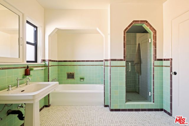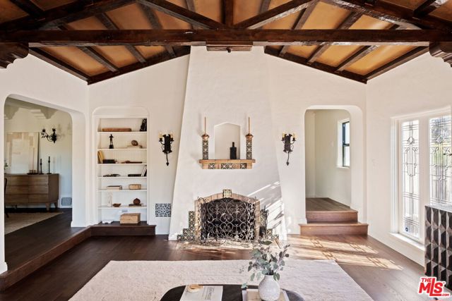 Classic 1928 Spanish Revival Home in Wilshire Vista | Los Angeles. A neighborhood gem built in 1928, this one-of-a-kind Spanish Revival residence embodies the warmth, character, and craftsmanship that define classic Los Angeles architecture. Nestled on a tree-lined street in Wilshire Vista, this charming two-story home welcomes you with timeless elegance and modern comfort. The sun-filled living room features original beveled leaded-glass windows that flood the space with natural light. A soaring beamed cathedral ceiling with hand-stenciled detailing adds dramatic beauty, while a Batchelder-tiled fireplace creates the perfect gathering spot for cozy evenings. The house has been freshly renovated with new hardwood flooring and new windows throughout, blending the home's rich 1920s details with contemporary ease. With three large bedrooms, two full bathrooms and 2,719 sq. ft of living space, the home offers generous, light-filled spaces ideal for everyday living and entertaining. Handcrafted tilework and vintage fixtures put the artistry and the enduring charm of the 1920s front and center, making the house a truly special place to call home.