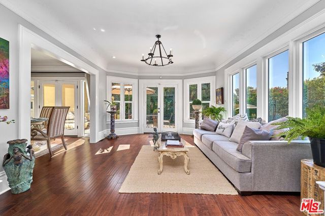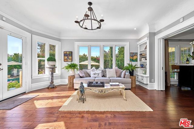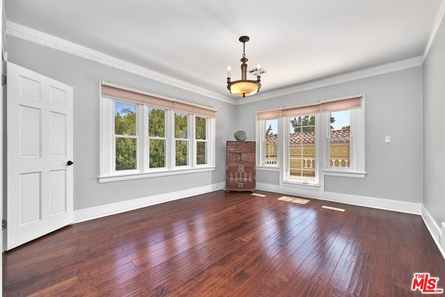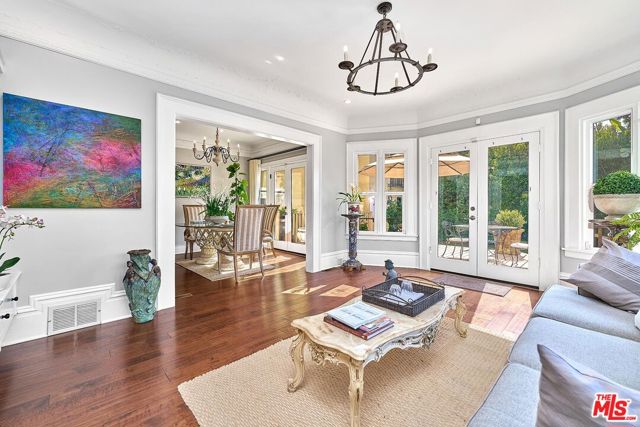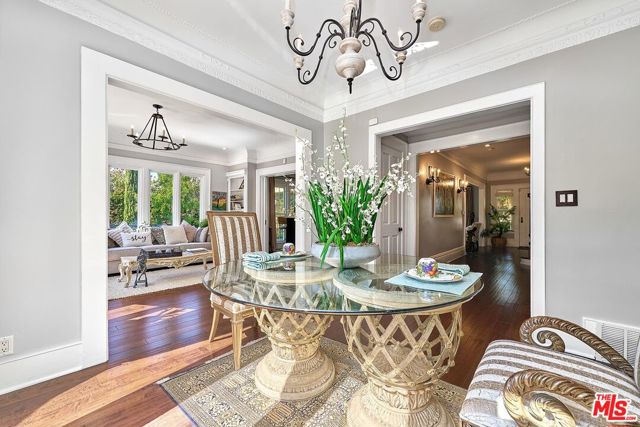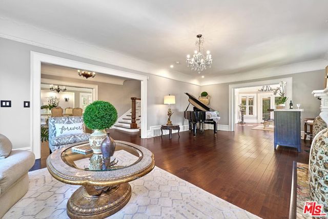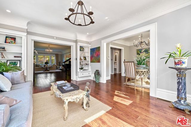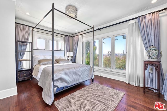 Welcome to 136 Fremont Place, an extraordinary Mediterranean-style residence nestled within the prestigious, gated community of Fremont Placecomplete with 24-hour security for peace of mind. Ideally located between Wilshire and Olympic Boulevards, just east of Highland Avenue, this home offers a rare blend of timeless architecture and modern luxury. Boasting 5 spacious bedrooms and 7 bathrooms, the home features expansive living areas with gleaming hardwood floors, a fully updated kitchen, and a dramatic staircase leading to a serene master suite. The main floor includes a versatile bedroom or maid's quarters, while the separate guest quarters above the garage provide additional privacy and comfort, Changing room.shower for the swimming pool. A bright breakfast room and inviting family room open onto a generous deck that overlooks a sparkling swimming poolperfect for entertaining or relaxing in your private oasis. The lush backyard is adorned with mature fruit trees, including persimmon and jujubee, and most windows and doors are fitted with double-paned glass for energy efficiency and tranquility. This move-in-ready gem is truly one of a kind, offering exceptional grounds, landscaping, and a unique blend of old-world charm and contemporary convenience. Property is also for Lease $15,000/MO
