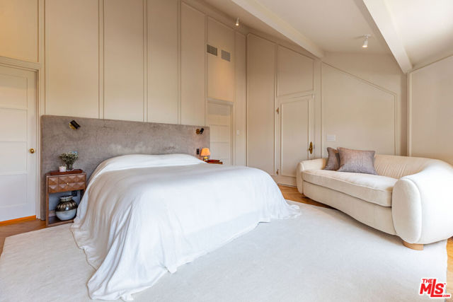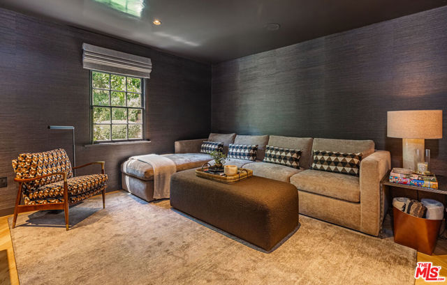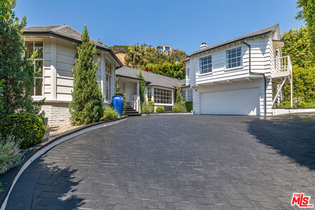 Charming lower Sunset Plaza jewel-box residence, originally envisioned by Robert Byrd AIA and thoughtfully reimagined by Bradley Adcock. Privately tucked away at the end of a cul-de-sac, the home sits behind a gated drive with a spacious motor court, offering serenity just minutes from the Sunset Strip. Inside, you will find refined details throughout - oak herringbone floors, French doors, picture windows filling the rooms with light, striking stonework, marble fireplaces, and inviting spaces ideal for entertaining. The main level boasts dual living rooms with soaring ceilings, an elevated formal dining area, a richly hued media room, and a bespoke bar. A spiral staircase from the curved kitchen descends to a hidden, prohibition-inspired wine cellar and tasting room. Occupying an entire floor, the primary suite impresses with 16-foot vaulted ceilings and a marble-clad bath overlooking the city. Outdoors, lush gardens surround the pool, spa, fire pit, and multiple sitting areas, creating a peaceful retreat. This one of a kind mini-compound offers a private oasis in the very heart of Los Angeles.