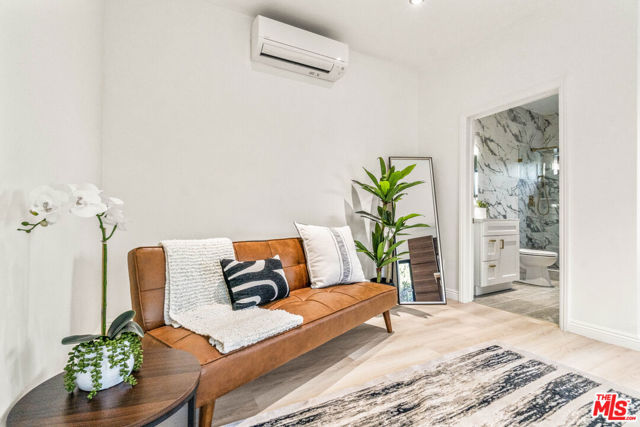 Discover 2315 and 2315 1/2 Loma Vista Place: An urban oasis nestled among treetops on a historic stair street in the vibrant, artistic enclave of Silver Lake. Built in 2024, this brand-new, two-bedroom, two-bath single-family residence radiates contemporary style in a natural setting. The first level welcomes you with an entryway leading to an open-concept living room that boasts a custom kitchen. This kitchen is equipped with modern appliances and features a stunning Calacatta Gold Quartz island that seats four. Completing the first floor is a full bathroom and sliding glass doors that open to a wraparound deck, perfect for embracing indoor-outdoor living. Upstairs, you'll find an additional den space, two bedrooms, and a luxurious bathroom with a porcelain tile shower adorned with sleek gold finishes, offering a perfect fusion of style and functionality. The location provides a rare tranquil setting among treetops, with views of the San Gabriel Mountains. The private wraparound deck is an ideal space for outdoor dining, gardening, and socializing, epitomizing the California lifestyle. An attached studio ADU, with a full bath and its own address, adds versatility. Whether used for rental income or as a dedicated home office, this space also includes its own garden area and a balcony that frames breathtaking panoramas of Silver Lake and downtown Los Angeles. Situated on a serene stair street, this residence is perfect for those who value privacy, nature, and an active lifestyle. It beautifully marries sophisticated design with practical living, right in the heart of Silver Lake, one of the most sought out neighborhoods in all of Los Angeles.