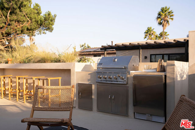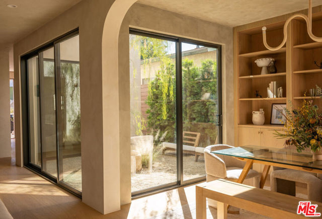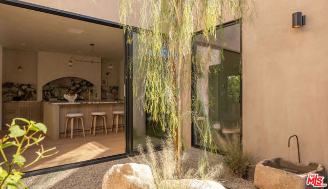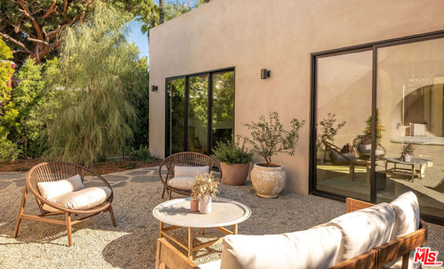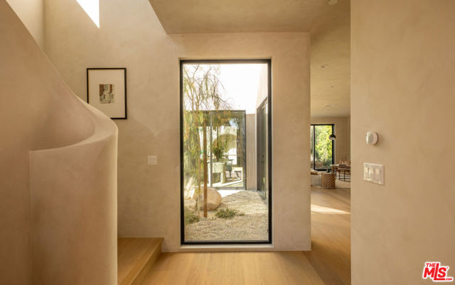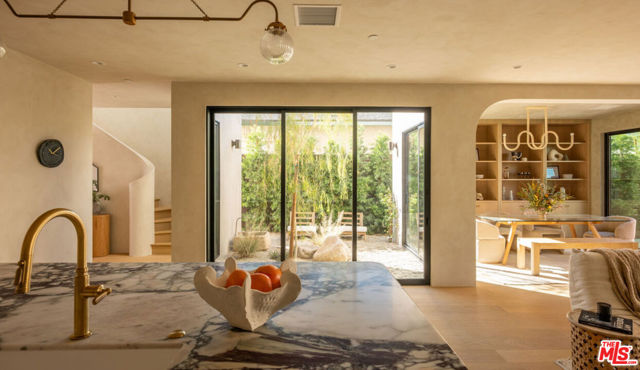 Newly built in 2025, this architectural Frogtown compound embodies the best of modern California living - where high design meets comfort, privacy, and functionality. The gated property includes two stunning new residences: a 3 bed, 2.5 bath two-story main home with attached 2-car garage and a sophisticated 1 bed, 1 bath ADU with its own rooftop deck and outdoor kitchen. Each home boasts impeccable designer finishes with lush landscaping. Together, they form a serene retreat in one of LA's most dynamic and creative neighborhoods. Past the beautifully landscaped front yard, the travertine-clad main home invites you through a graceful arched entryway into a space that feels both sculptural and warm. Just beyond the entry hall, a dramatic curved plaster staircase sweeps upward to the second level. An atrium with its own limestone fountain and a Weeping Acacia tree is viewable through expansive glass walls, filling the home with light and tranquility. The powder room, conveniently located near the front door, features Roman clay walls and a Calacutta Viola marble sink. The open-concept main level offers a seamless flow for entertaining and everyday living. The living room features a gas fireplace flanked by custom, arched built-ins, while the adjoining dining area is anchored by stunning, floor-to-ceiling built-in buffet shelving and encircled by voluminous Milgard sliding doors that open seamlessly to the lush backyard. At the heart of the home, the designer kitchen showcases a striking rectangular island clad in fluted white oak, paired with honed Calacatta marble countertops, a paneled dishwasher, and premium THOR appliances - including a six-burner range and stainless steel refrigerator. The kitchen features hidden storage behind sliding cabinet pocket doors, and the built-in microwave tucked within the pantry adds sleek convenience. All three bedrooms are upstairs, each with new Milgard windows and limewash walls. The two secondary bedrooms share a stylish bathroom featuring a bathtub and shower, while the nearby laundry closet provides everyday convenience. The primary suite is a peaceful sanctuary featuring limewash walls, a large walk-in closet concealed by wood-fluted doors, and a private terrace with built-in seating that overlooks the backyard. The spa-inspired en-suite bath tiled in Tundra marble features a soaking tub, a large standing shower, a dual-sink vanity, a water closet, and windows that bathe the space in natural light. At the rear of the property, the 1 bed, 1 bath all-electric guest house (ADU) mirrors the main home's style and craftsmanship. The open living space features warm and inviting engineered oak wood floors, limewash walls with a custom-built seating nook, and a full kitchen with beautifully unique Ceppo Grey marble countertops. A tranquil bedroom with dark limewash walls, a stunning bathroom with limestone tiles, and a stacked laundry in a hallway closet make it a fully self-contained space. Outside, the ADU's private rooftop deck is perfect for sunset gatherings, with bar-top seating and built-in BBQ, beverage refrigerator, and sink, creating a true hideaway for guests or an ideal live-work retreat. The backyard is a lush oasis designed for dining and relaxation, featuring a built-in arched seating bench and romantic greenery throughout. Additional highlights include a finished two-car garage with EV outlet, and all-new systems, including roof, foundation, HVAC, plumbing, sewer line, and electrical. Ideally situated in Frogtown, just steps from the LA River bike path, this exceptional compound is surrounded by the area's most beloved local spots, including Wax Paper, Lingua Franca, Loreto, Salazar, and Spoke Bicycle Cafe. Whether you're looking for a design-forward sanctuary or a flexible investment opportunity, this modern compound offers the best of both worlds: style, sophistication, and serenity in one of LA's most sought-after neighborhoods.