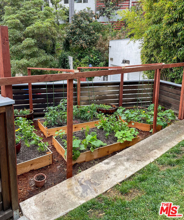 Discover a private canyon retreat that balances modern comfort with hillside character, just over half a mile up Beachwood Dr. Originally a 1925 cottage, this property was taken down to the studs and rebuilt into a light-filled modern 4-bedroom, 3-bath, 2-story home. Walls of picture windows surround the home, creating a treehouse-like atmosphere with natural light and 360 canyon views. Multiple outdoor spaces include a newly built 250 sq ft patio and a rooftop viewing deck showcasing stunning sunrises over downtown LA. Surrounding the patio, an enclosed organic vegetable garden and landscaped slope provide a lush green backdrop, creating a serene hideaway for outdoor dining and relaxation. Inside, soaring ceilings with exposed beams, wood floors, and a dramatic stacked-stone fireplace set the stage. The kitchen is equipped with Fisher & Paykel appliances including a dual refrigerator/freezer. A versatile bedroom with an adjoining bathroom, ideal for guests or a home office completes the main level. Upstairs, the primary suite and two additional bedrooms each have access to their own private balconies. The rare 2-car garage makes hillside living effortless. Whether entertaining, working from home, or unwinding above the city, this Beachwood Canyon residence offers the best of Hollywood Hills living.