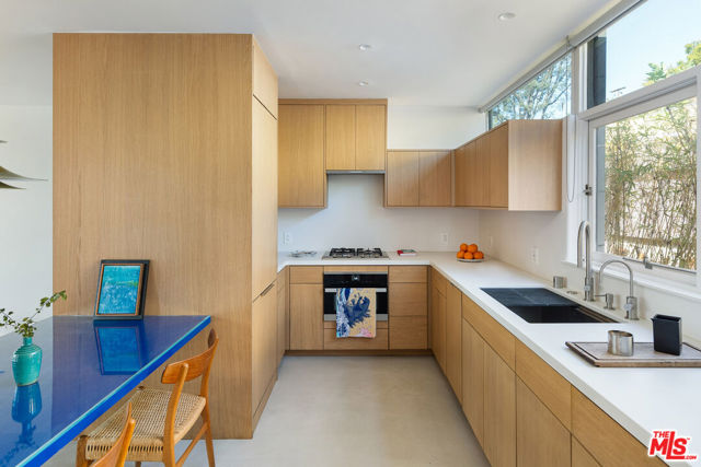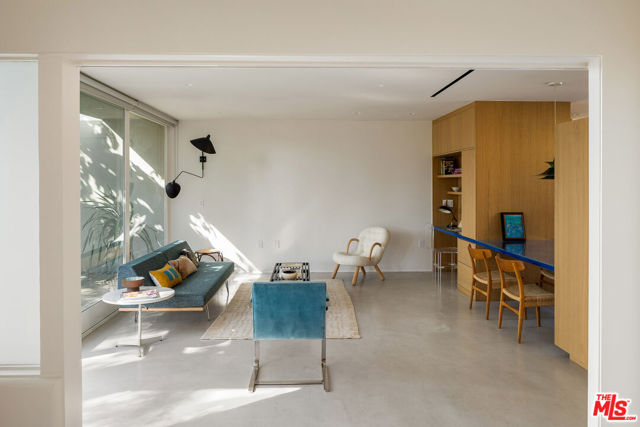 Avenel Cooperative Housing Project, 1947. Gregory Ain, Architect. On the National Register of Historic Places and Los Angeles Historic-Cultural Monument #1221. Brilliantly progressive in 1947, the idea of socially conscious housing stands the test of time. It is quite possible that Ain's early youth spent at the Llano del Rio, an experimental farming colony in Antelope Valley, may have influenced his later ideas as an architect. At Avenel, 10 families pooled their resources to sign on to Ain's social experiment. The 10 ingeniously designed units laid out in two identical rows, integrate both private and public spaces. Each unit has a front patio for utility, and a rear patio that opens up to western facing views. Ain's signature sliding walls can be opened or closed depending on need. The most recent renovation was well-thought out by the owner, Alexsey Antonov along with artist Nora Shields. White oak built-ins in each of the three bedrooms (one can double as a den), are designed for multiple storage uses such as books and other objects. Both sliding doors, doorknobs and pulls for the linen closets are original to the property. The residence includes: 3 bedrooms, 1 bathroom, attached 1-car garage at the front of the building, and an extra spot for guests.