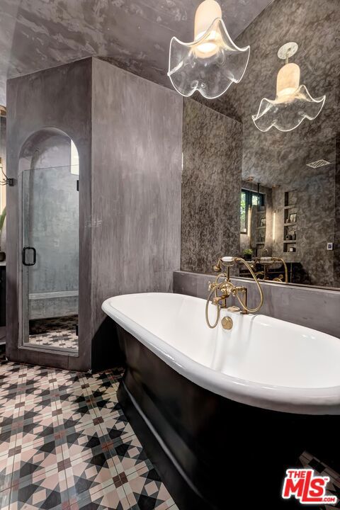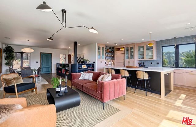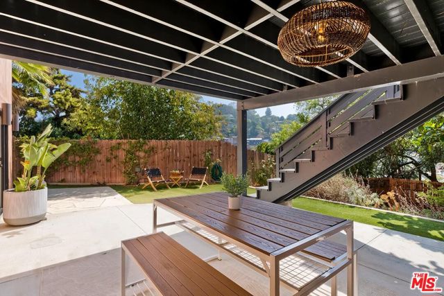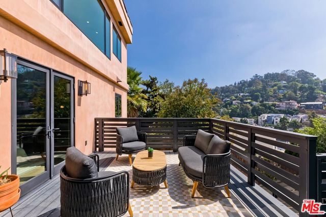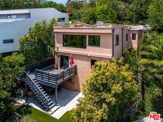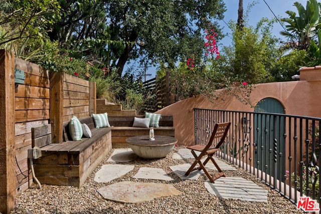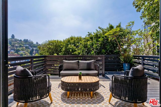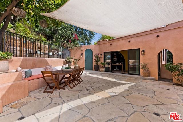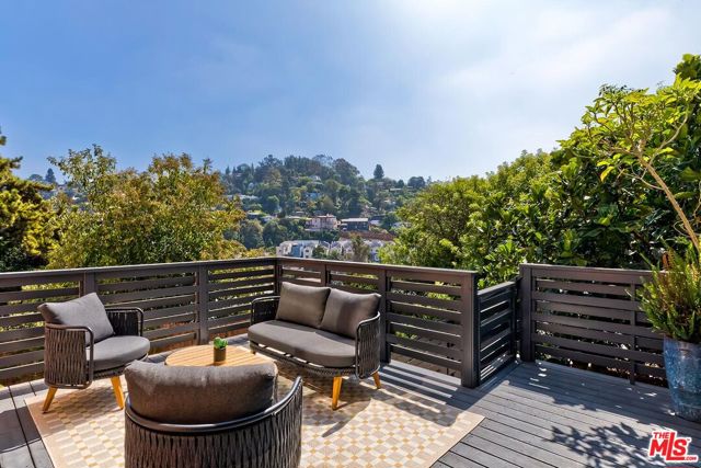Behind a private arched entry, this discreet hillside compound by Vidal Design Collaborative blends Spanish Revival charm with refined modern updates. Fully renovated in 2021, the home layers art deco accents with contemporary comforts, creating a retreat that is both stylish and highly functional. An expansive multi-level courtyard with fire pit sets the tone for year-round entertaining, while a converted garage provides the ideal setting for a home office, studio, or gym. Inside, the main level features wide-plank European oak floors, curated lighting, and a custom kitchen with premium appliances and tailored finishes. Large windows frame hillside views, while a flexible bedroom or office with en-suite bath adds convenience and versatility. The lower level is anchored by a serene primary suite with bespoke cabinetry and a spa-like bath appointed with heated floors, a cast-iron soaking tub, and designer fixtures, complemented by a second en-suite bedroom for family or guests. On the garden level, a fully permitted ADU with private entrance provides rare flexibility; most recently generating $3,500 per month in income, it can serve equally well as a rental, guest quarters, or multi-generational living space. Outdoors, a landscaped backyard and terraced areas offer privacy and calm, perfect for gardening, dining, or simply enjoying nature. Tucked in Franklin Hills between Silver Lake and Los Feliz, this residence combines architectural pedigree, flexible living, and a true sense of privacy in one of Los Angeles' most sought-after enclaves.
