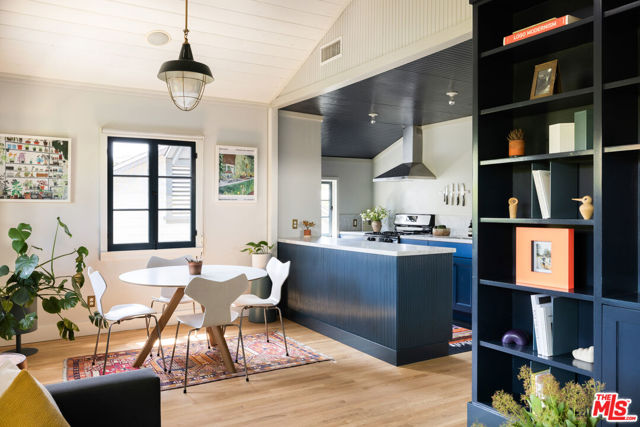 Perched above the street, behind lush hedges and an archway of bougainvillea sits this beautifully reimagined Los Feliz bungalow. The charming front porch welcomes you into light-filled, perfectly designed living spaces that offer a seamless flow for easy living and entertaining. Step through the front door to an impressive living and dining room with soaring, tongue and groove ceilings, stunning oak floors, custom built-in bookshelves, and tree-filled views. The vibrant blue kitchen features Carrara marble countertops and backsplash, stainless steel appliances, and custom cabinetry and hardware. The two lovely bedrooms, one of which opens to a private garden patio with wood decking, offer ample closet space and storage. The impeccably-designed Bowery Hotel inspired bathroom features subway tile, black marble floors, and brass hardware accents. The hues of blue and grey that the house is painted in were matched to color swatches from Japanese artist Katsushika Hokusai's Great Wave painting. The home's incredible attention to detail continues to the exterior of the property, where multiple dreamy outdoor spaces provide the perfect setting to enjoy weekend brunches and evening cocktails with friends. This incredibly special and private property feels like a sanctuary in the heart of the city, while just a quick stroll to all of the amazing shops and restaurants that Los Feliz and Silver Lake have to offer. This home has been ranked in the top 5% of Airbnbs in Los Angeles for the past 3 years. The current owner has consistently generated approx $100,000/year renting the home on Airbnb during the past 2 years.