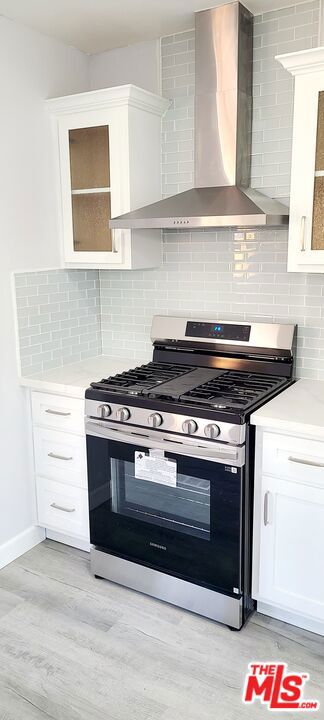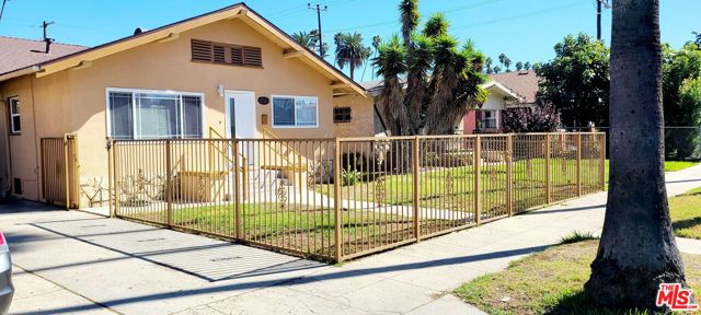 This stunning home offers a fabulous new, all wood shaker style kitchen with soft closing cabinet door hinges. Some cabinet doors feature a textured glass panel for a beautiful privacy look. The white quartz Carrara counter tops are glamorous , connecting to the polished sublime backsplash. There are all new stainless steel appliances by Samsung. The French door refrigerator has an ice maker and the oven has a 5 burner cook top, with an exquisite wall range hood above it. The sink is stainless steel, with a restaurant style water faucet. Bathrooms have new, modern style vanities, with illuminated make-up mirrors. Main bathroom has an eye-catching brushed nickel frameless shower/tub door, with white Carrara-tiled shower walls. Brushed nickel lighting fixtures, and faucets make the bathrooms look amazing. Luxury vinyl plank-gray Charleston Oak Style flooring is water proof, and scratch resistant throughout the home. Fresh radiant gray paint on the interior walls through out , with ice white ceilings , doors, and baseboards. Recessed lighting , with brushed nickel lighting fixtures complement this gorgeous home, with a spacious open floor plan. New double pane windows, with stylish grids for the front windows. Upgraded electrical, and plumbing. New roof. The Exterior has an elegant white fiberglass door with modern lighting fixtures. This must-see home screams "Location , Location, Location". Sitting on this palm tree lined street are various entertainment options including: The Getty Center: A world-renowned art museum with gardens and architecture. Grammy Museum: Explores the history and artistry of music. Petersen Automotive Museum: Focuses on the history of automobiles. La Brea Tar Pits and Museum: A museum and active paleontological research site. California Science Center: Features interactive exhibits on science and technology. Live entertainment and theme parks Universal Studios Hollywood: A major theme park and working studio. L.A. LIVE: A complex with music venues, restaurants, a bowling alley, and a movie theater. El Capitan Theatre: A historic movie palace on Hollywood Boulevard. For your taste buds there are numerous delicious options such as : Tev's kitchen, Fuegos LA, Southern Soul LA, Two Hommes, ORA, Steaks LA, Dulan's on Chrenshaw, Palmsugar, Sunday Gravy, The Breakfast Shack and many more. Nearby access to the I-10 fwy, I-405 fwy, and the I-110 fwy. ADU potential with the detached garage in the back, buyer to verify . Some images are virtually staged.
