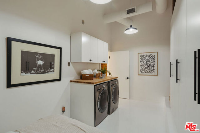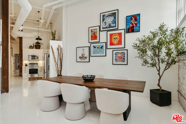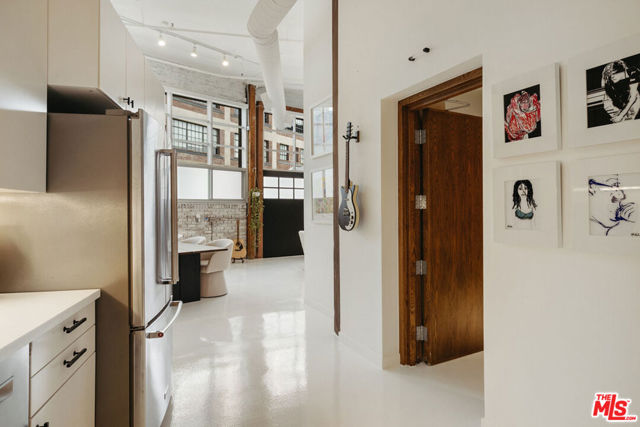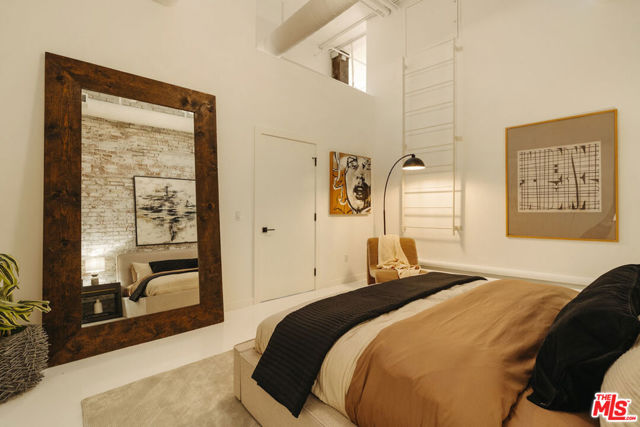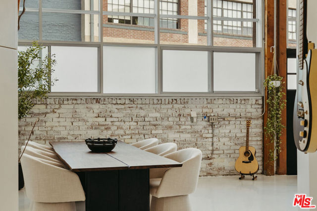 A rare opportunity to own a truly distinctive live/work loft in the heart of the Arts District - a space that perfectly blends creativity, comfort, and design. Originally renovated by a renowned film and television composer, this residence features a fully operational, soundproof recording studio built to professional standards ideal for music, film, or post-production work. Every element was crafted with precision and no expense spared, resulting in a space that's as functional as it is inspiring. Beyond the studio, the home offers a warm, livable layout anchored by a spacious master bedroom suite with built-in upper storage and the flexibility to be converted into a second studio if desired. The custom-built galley kitchen combines thoughtful design with quality finishes, making both everyday living and entertaining effortless. Additional highlights include 15.5-foot ceilings, original brick, post and beam accents, custom soundproofed steel entry doors and windows, power shades, and newly refinished white epoxy floors that lend a sleek, gallery-like atmosphere. A private street-level entrance with dedicated parking enhances both privacy and convenience. Set within the iconic Molino Street Lofts, a hallmark of 1920s warehouse architecture converted into 91 condominiums in 2006, residents enjoy two rooftop decks with city, building, and street views, a pool and BBQ area, and a fitness center. Surrounded by the creative pulse of the Arts District just steps from Hauser & Wirth, Manuela, Bavel, Verve Coffee, ROW DTLA, Soho House, local mural tours, Hank's Organic, the Arts District Dog Park, Damian, Bestia, Girl & the Goat, Urth Caffe, and more this vibrant neighborhood is also home to innovative companies such as Honey, BMG Music, 3sixteen, Soylent, Lucky Brand Jeans, and Spotify. This is an exceptional opportunity to own a true creative sanctuary and refined urban home.