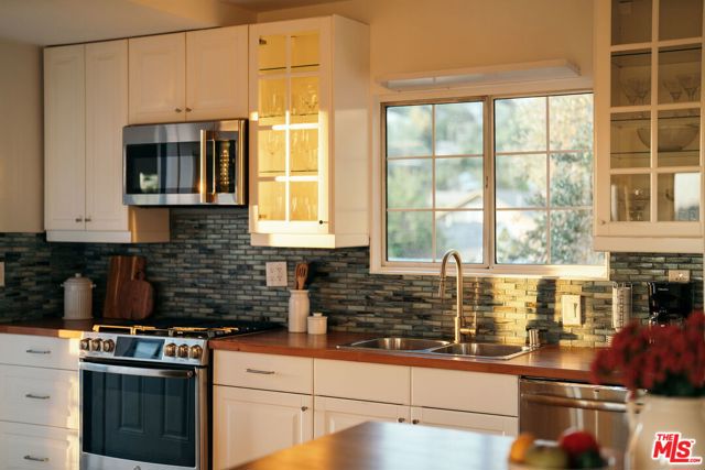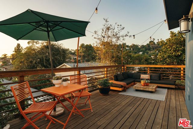 Set high above the street in the sought-after enclave north of York Blvd. in Highland Park, 5711 Stratford Rd. is a home that reflects the very best in NELA living--vibrant urban life at your doorstep and a peaceful hillside retreat to call your own! Past the front door and generous foyer, find yourself in an airy haven where massive windows look out upon rolling green hills and bathe the room in natural light. The kitchen--open to the living room--is the heart of the home and features stainless steel appliances, newly refinished butcher block countertops, plentiful storage space, and rich, warm floors. Cheerful hand-painted murals and stylish wallpaper adorn the bedrooms and add just the right touch of romantic whimsy. The home's unique 3 bed/1.5 bath footprint allows for hard-to-find versatility for something of its size--ideal for those who work from home, host guests, need a serene creative studio, or want everyone to have a corner of their own. The real magic begins when you head through the French doors and into the yard outside: an expansive redwood deck boasts breathtaking panoramic views that sweep across the city beyond. It's where you'll gather with friends for golden-hour dinners as the sun sets behind the hills to the west, watch fireworks bloom across the skyline, or simply sit beneath a canopy of stars and twinkling lights, feeling a world away from the city below. Thoughtful updates--Nest thermostat, central A/C and heat, newer roof and updated sewer line, ample sub-deck storage, herb garden and vegetable boxes, and a detached garage--ensure a life as effortlessly functional as it is beautiful. And while coming home feels like entering a sanctuary from the hustle and bustle of city life, your only blocks away from some of Highland Park's most beloved restaurants, bars, and shops: Amiga Amore, Cafe Jane, Hermosillo, Kumquat, and so many more are right down the way, offering unparalleled urban accessibility. With its effortless charm, convenience, and truly inspiring views, 5711 Stratford is a rare gem--a soulful space that reflects the creative spirit and beauty of Highland Park.