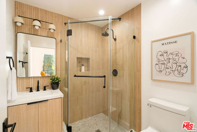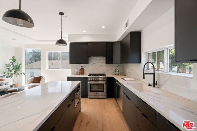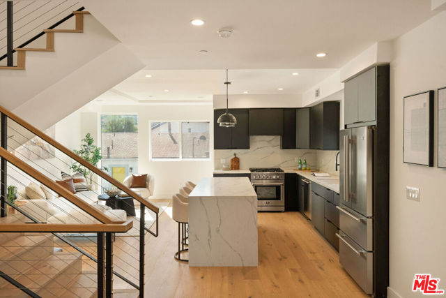 Welcome to Fig + Burwood, an intimate newly constructed community of eight homes conveniently located in bustling Highland Park! Completed in 2025, this 4bed/4.5bath modern residence features its most functional floor plan, with ample space to spread out and grow into. Enjoy the ease of direct access into your foyer from the spacious two car garage. Discover a private first floor suite complete with a spa-like en suite bath, perfect for visiting guests or use as a home office. Find your way to the second level where an abundance of natural light pours in through new windows, highlighting new white oak flooring throughout the generous open living space. Stylish pendant fixtures draw your eyes to the well appointed dining area and oversized kitchen island with built in seating for three. Take advantage of the plentiful countertop space and volunteer to host this year's holiday gathering. Dazzle guests with a designer kitchen with custom cabinets adorned by quartz counters and top of the line stainless steel Forno appliances. Enjoy three roomy primary suites all with dedicated baths + walk-in closets, lending to the flexibility of how you use the space. Two bedrooms enjoy their own private balconies offering relaxing spaces for solitary moments of morning reflections. An expansive roof top deck on the upper level has been prepped for you to customize it for premium al fresco living. Move right in with outlets galore for your ideal outdoor entertainment system set up, hook ups for an outdoor kitchen, and a built-in fire pit ready for enjoyment. Enjoy never-ending moments of gratitude as you indulge in sprawling views of verdant hillsides and twinkling city lights. Finally, you've got your own piece of the pie! Just minutes to the best of both Highland Park + Eagle Rock such as foodie favorites like Little Beast, Highly Likely, Checker Hall, Hippo, Joy + more. Convenient access to both the 134 + 110 Freeways allows the urban explorer to jaunt around the city seamlessly. Welcome home!