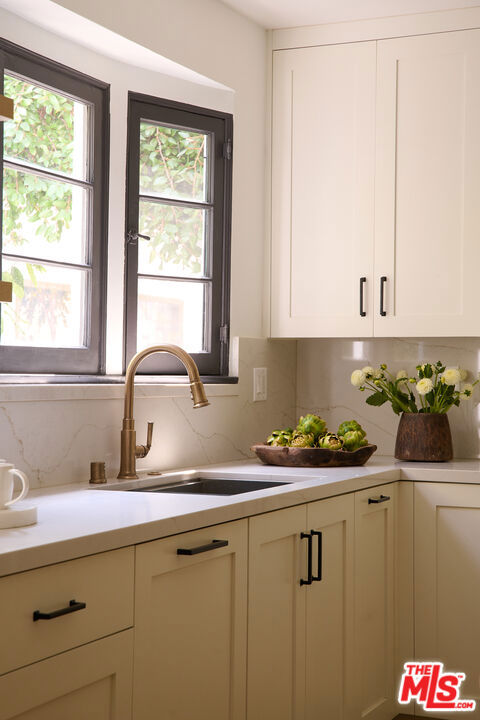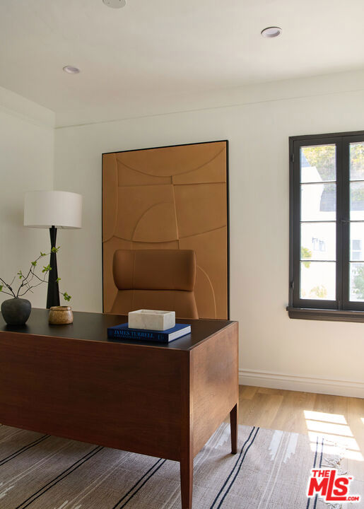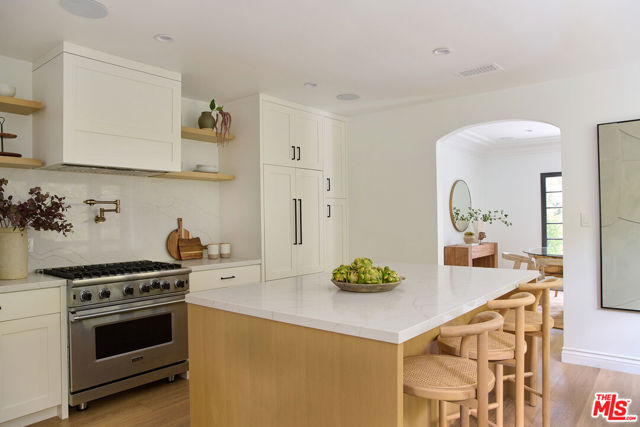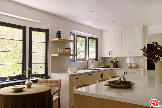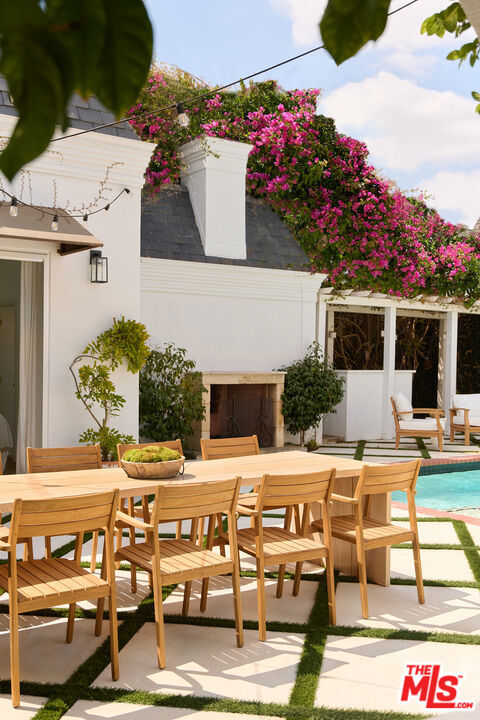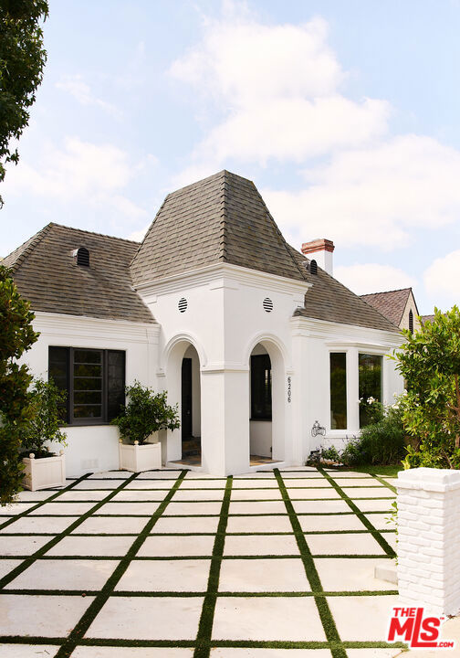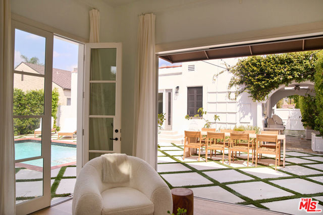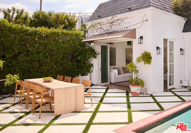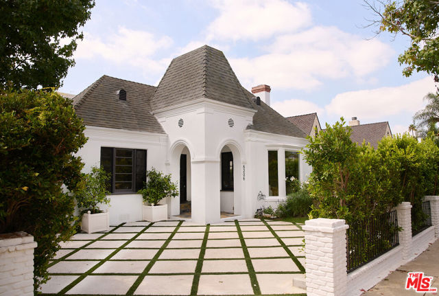 Welcome to 6206 Lindenhurst Avenue, a stylish Beverly Grove residence where classic architecture meets modern living. Behind a charming facade, this 5-bedroom, 5.5-bathroom home offers a warm and inviting layout with thoughtful updates throughout. The sun-filled living room features original windows, hardwood floors, and a gas-burning fireplace that anchor the home's character. A tastefully updated kitchen with stone counters, stainless steel appliances, and custom cabinetry flows seamlessly into the dining area, perfect for both everyday living and entertaining. Updated bathrooms showcase clean, contemporary finishes while preserving a timeless feel. The backyard is a private retreat designed for both relaxation and entertaining. A sparkling pool is framed by lush landscaping and a bougainvillea-covered trellis that creates an idyllic dining and lounge setting. The outdoor fireplace adds warmth and charm for evening gatherings. A detached guest house with a full bathroom offers the ideal space for visitors, a home office, or poolside cabana. With ample room to entertain or unwind in privacy, this home strikes the perfect balance of comfort and sophistication. Located on a quiet tree-lined street in the heart of Beverly Grove, just moments from The Grove, Melrose, and Beverly Hills dining and shopping destinations, this home offers the very best of Los Angeles living.