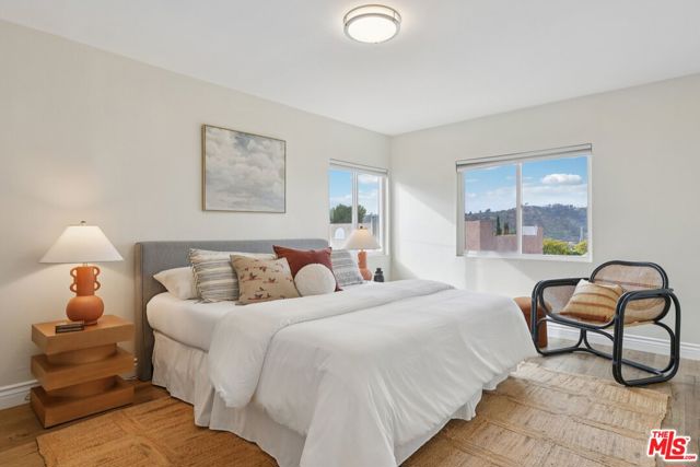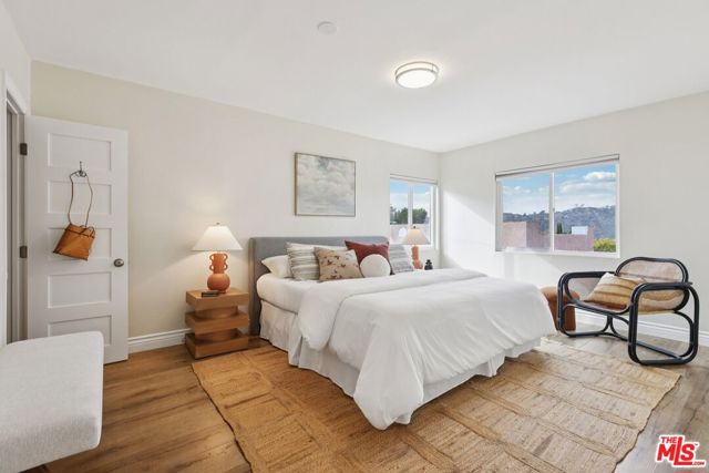 Welcome to your California bungalow in Cypress Park - a thoughtfully designed home that blends modern sophistication with effortless indoor-outdoor living. Nestled at the foothills of Mount Washington with sweeping views of the surrounding hills and Griffith Observatory, this 2-bedroom, 1-bath home offers 1,000 square feet of refined, light-filled living. Step inside to discover warm wood-look flooring that flows throughout, complemented by crisp white walls and lighting that creates an inviting, contemporary atmosphere. The heart of the home features a chef-inspired kitchen with custom gray shaker cabinetry, sleek white countertops, and stainless-steel appliances, all bathed in natural light from perfectly positioned windows that frame those coveted mountain views. Within the kitchen is a dining area that offers the ideal setting for morning coffee or intimate gatherings, with direct access to the outdoors. The spacious primary suite showcases those same stunning hillside vistas through dual windows, creating a serene retreat with ample natural light. A second bedroom provides versatile space for guests, family, or a home office. The bathroom impresses with a dual-vanity setup, timeless white subway tile accented by a sophisticated blue horizontal stripe, modern fixtures, and classic hexagonal floor tile - a perfect blend of vintage charm and contemporary style. A standout feature awaits in the bonus room with vaulted ceilings and an elevated washer/dryer setup - this flexible space is ideal for a home gym, yoga studio, or creative workspace. The private backyard is an entertainer's dream, featuring a generous concrete patio, and modern horizontal wood fencing that creates an intimate oasis for al fresco dining or relaxing under the California sky. Accessible parking for two cars adds welcome convenience. Located in one of Northeast LA's most dynamic neighborhoods, this home places you in a true walker's paradise. Stroll to local favorites like Taqueria Frontera, 1802 Roasters, and Golden Poppy Market, or explore the endless hiking trails of Mount Washington and Elysian Park just moments from your door. With downtown LA minutes away and a vibrant, creative community at your doorstep, this Cypress Park gem offers the perfect blend of urban convenience and neighborhood charm. Welcome to the lifestyle you've been searching for.