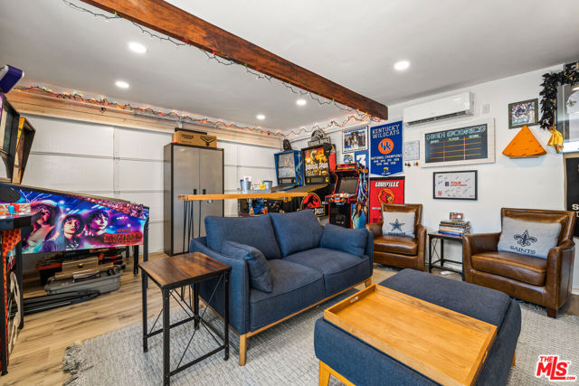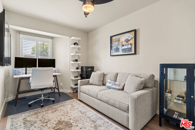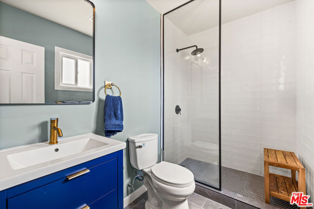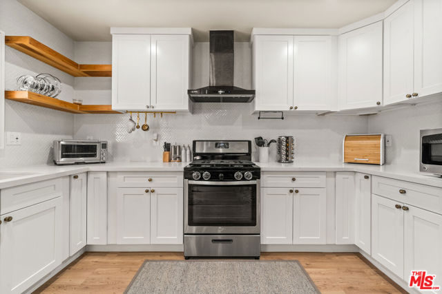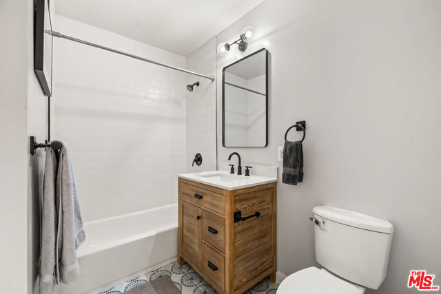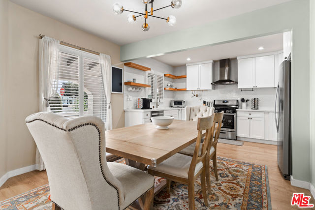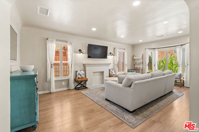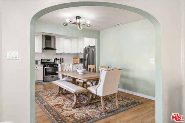 Step inside this beautifully reimagined Spanish-style residence where timeless architecture meets fresh, contemporary design. Nestled in the heart of Vermont Knolls, a neighborhood known for its tree-lined streets, central location, and easy access to dining, parks, and transit, this 3-bedroom, 2-bath home offers the perfect balance of historic charm and modern convenience. The light-filled living room welcomes you with smart Hue recessed lighting and bay windows framed by new shutters, creating a warm and inviting atmosphere. Flowing seamlessly into the dining area and kitchen, the space showcases white shaker cabinetry, Calacatta quartz countertops, a crisp herringbone tile backsplash, and stainless steel appliances - an ideal setting for both everyday living and entertaining. Both bathrooms reflect a refined Spanish-modern aesthetic, featuring designer lighting, stylish tilework, and thoughtfully appointed vanities. Wide-plank luxury laminate flooring runs throughout, enhancing the home's cohesive, open design. Outdoors, the gated front patio offers a charming and versatile space for morning coffee, evening gatherings, or quiet relaxation. The backyard, designed with drought-tolerant xeriscape landscaping, presents a blank canvas ready to be reimagined into your own outdoor retreat. Completing the property is a finished garage with recessed lighting, laminate flooring, and mini-split heating and cooling. Offering ADU potential, this versatile space is ready to become a guest suite, private office, studio, or gym, and offers nearly 300 more square feet of living area. Perfectly blending character, style, and opportunity, this home embodies the best of Los Angeles living in a design all its own.