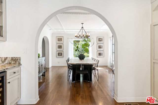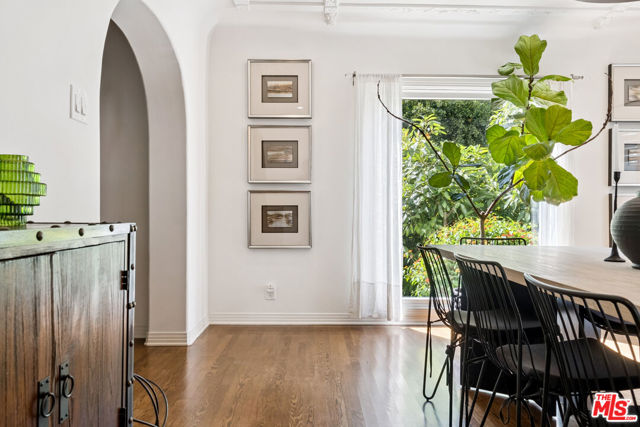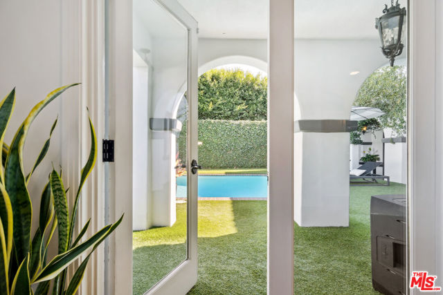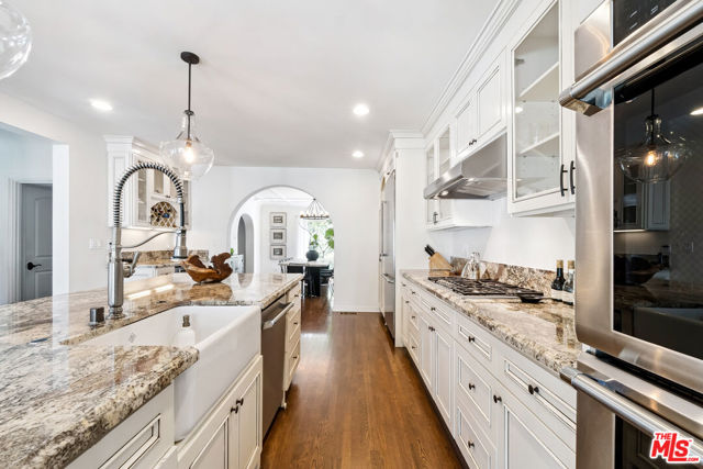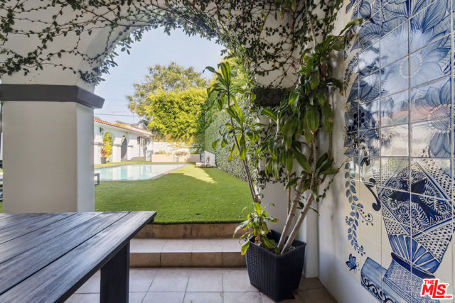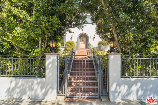 Brookside! Rock n roll history! Gorgeous Spanish Revival home perched atop a knoll in the desirable and very sought-after Brookside neighborhood adjacent to Hancock Park. This estate-like property, gated and surrounded by thick mature private hedges has a main residence with 4-bedrooms and 3-bathrooms plus a bonus sun room off the primary bedroom as well as a spacious guest house complete with kitchenette, 3/4 bath, private patio, separate laundry, and separate access from the side. Upon entry, from its foyer and dramatic staircase, the home has retained many of its period details and classic architectural elements that are a testament to a bygone era. From the step-down living room with its dramatic double-height, beamed ceiling, sets of French doors open onto a covered patio overlooking the sparkling swimming pool that is flanked on one side by a spectacular architectural colonnade of arches. The formal dining room, with its own elaborate ceiling detailing connects to a very expansive gourmet chef's kitchen with Thermador appliances, double ovens, farm-style sink, pantry space, and a generous island perfect for dining/entertaining; in addition to there being ample space for a dinette, there is also an additional breakfast room and walk-in pantry. The sweeping staircase divides the upper bedroom level of the residence: a very well proportioned primary suite features 2 walk-in closets, a connected sun-room that overlooks the pool, and a spacious bathroom with double sinks, jetted-tub and glass-enclosed shower. The guest room wing features 2 substantial-sized bedrooms with walk-in closets, and a 3rd smaller room ideal for use as a bedroom, study/office or any number of uses; a large full bathroom with dual sinks services this wing and a laundry space for a stackable washer/dryer is located between these rooms. Once a hub for the musicians in the Laurel Canyon music scene, Peter Asher, folk singer, music producer, Grammy winner and friend of the Beatles rented this house for $400 and James Taylor and Carole King lived here for years as his guests; James Taylor's hit album "Sweet Baby James" was written/produced here.